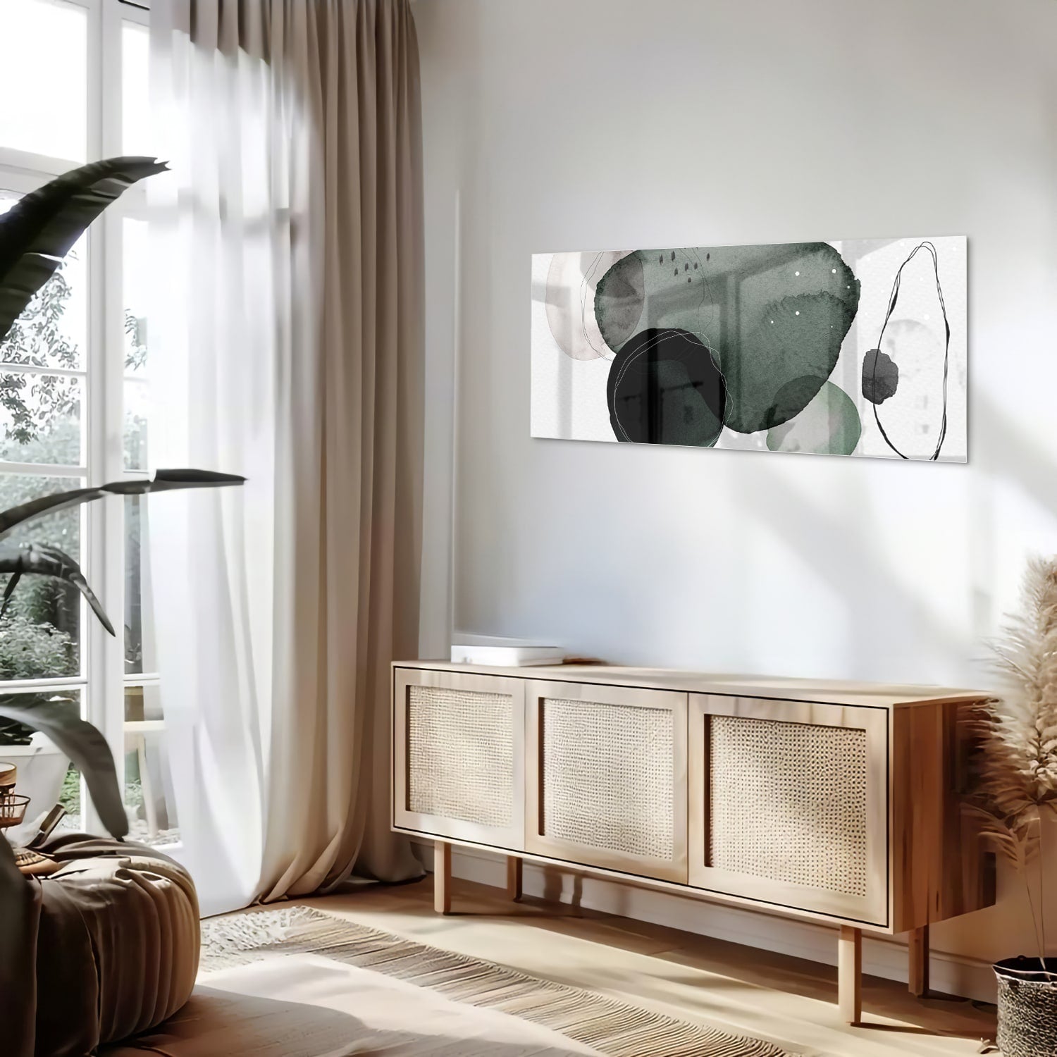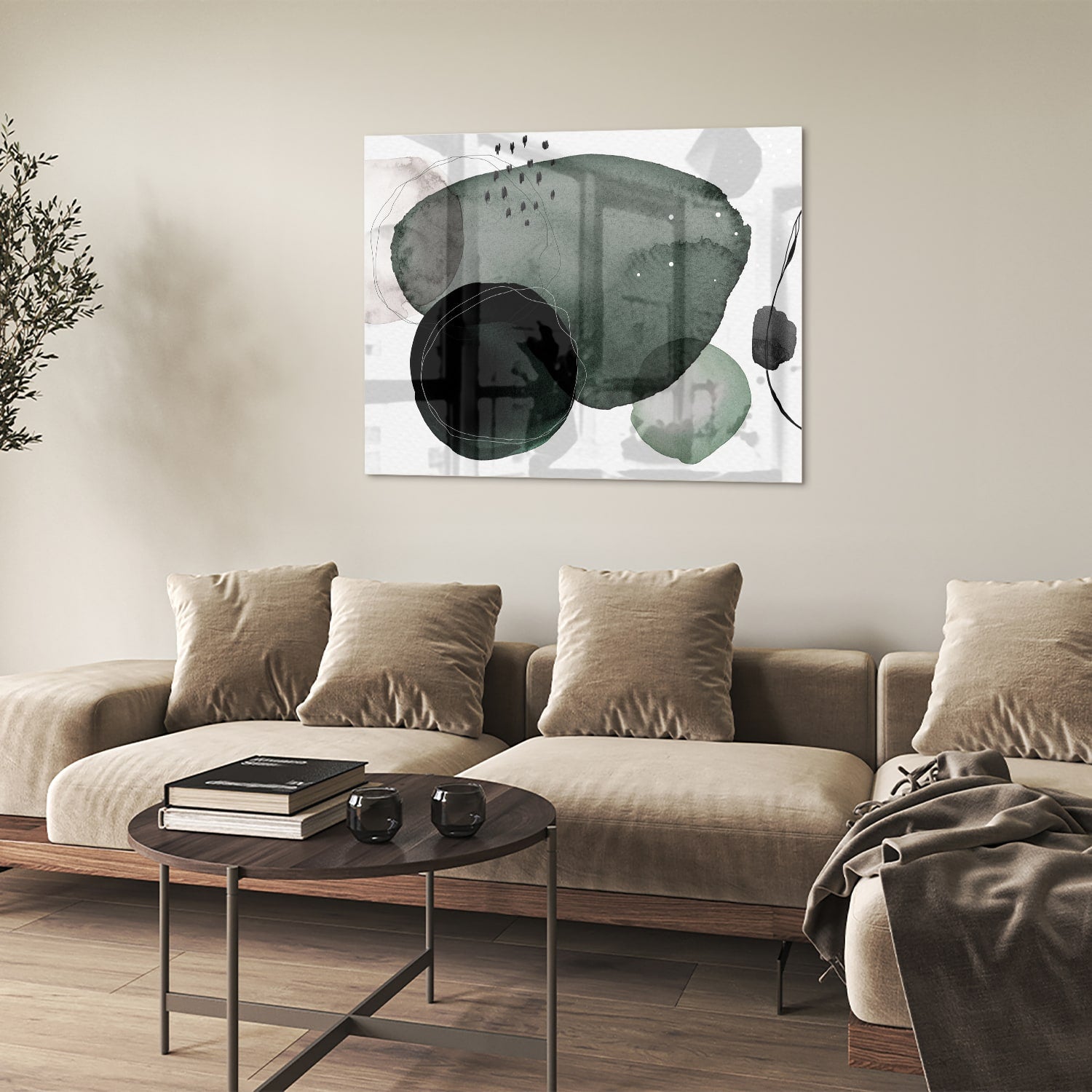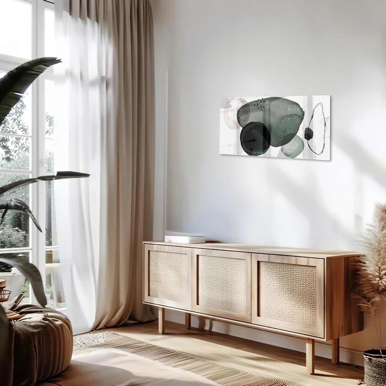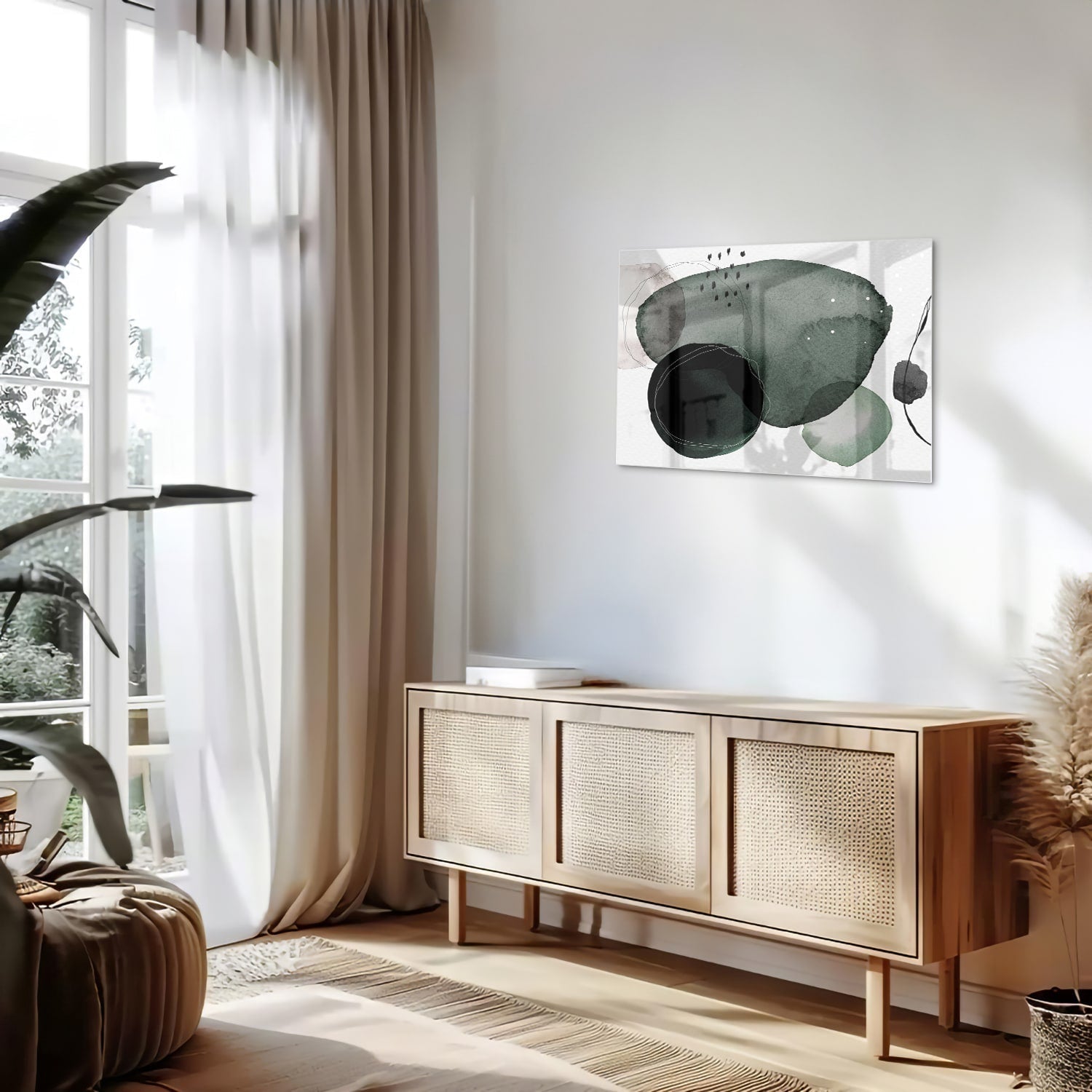 Abstract glas schilderij in groene tinten
