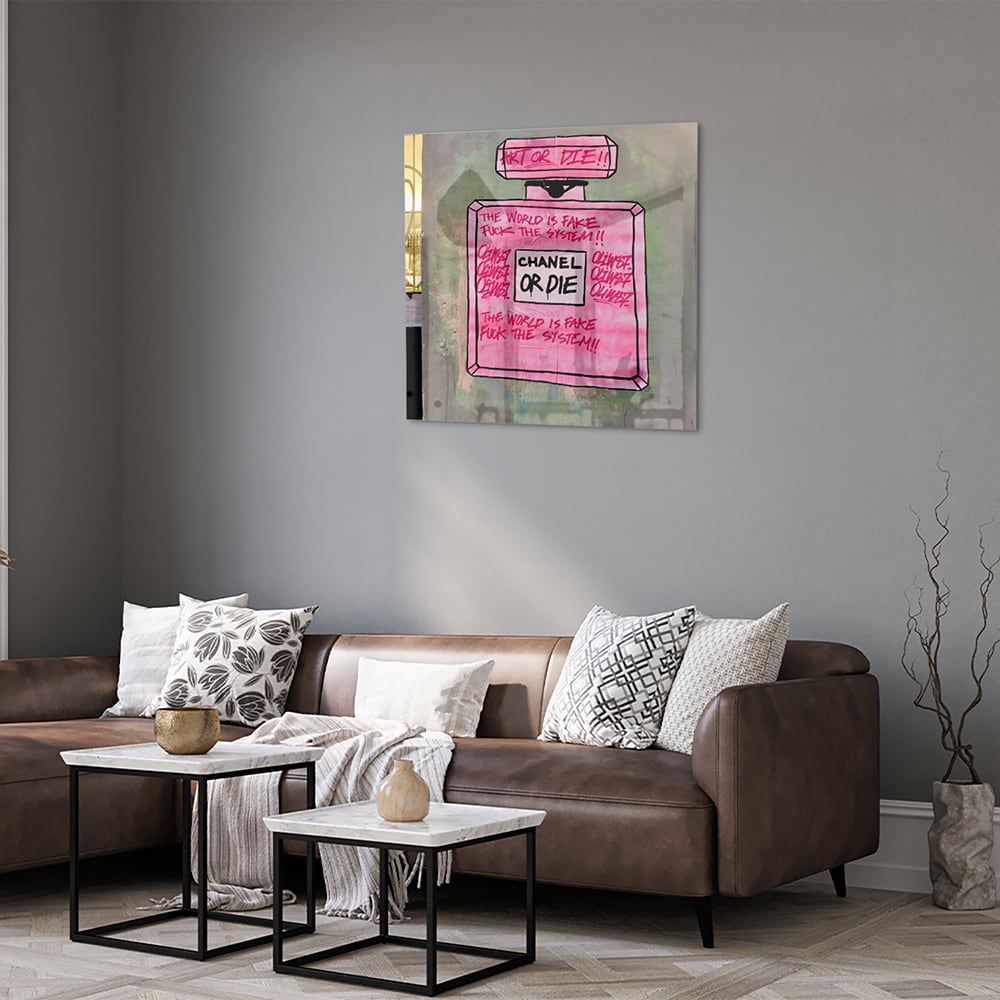Stijlvol Glazen Schilderij: 'Chanel or Die'