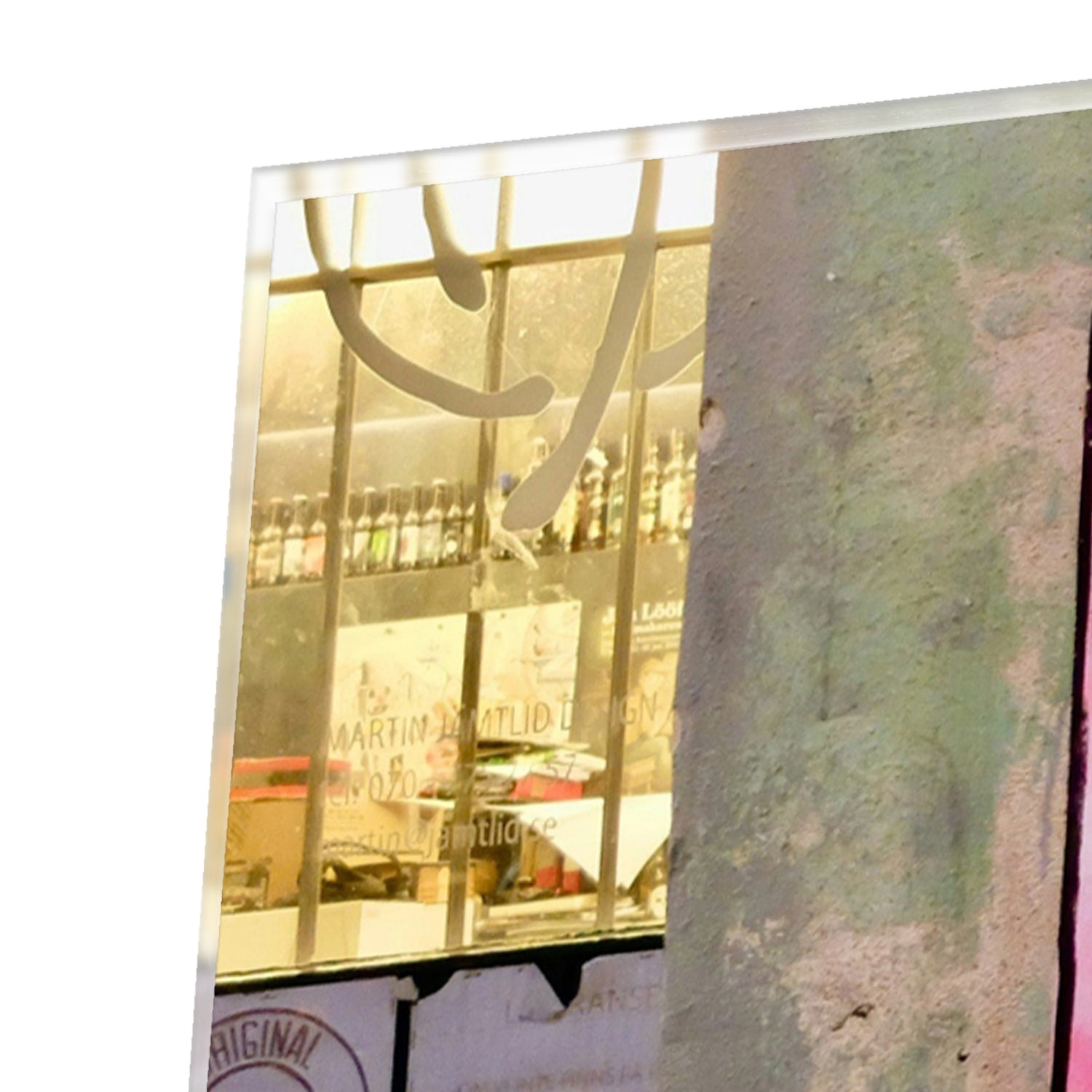 De reflectie op de foto's benadrukt de glaslook en maakt geen deel uit van het ontwerp.