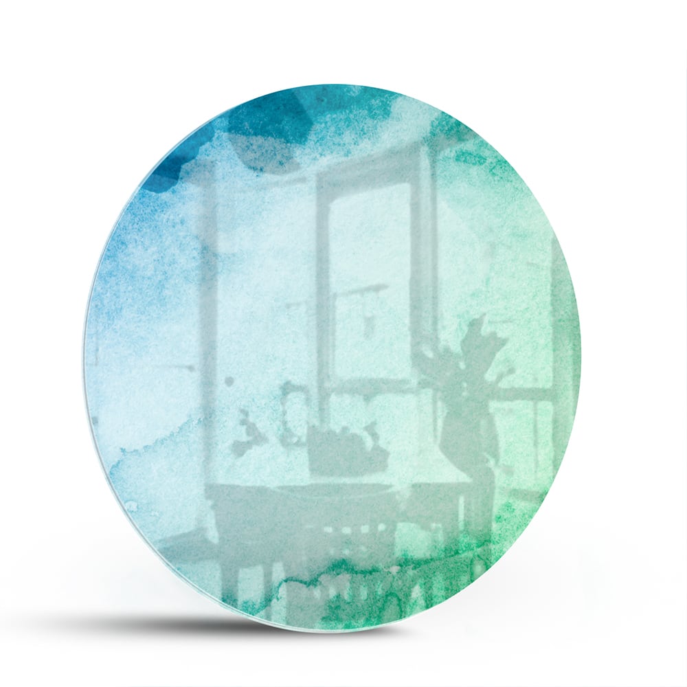 Abstract glas schilderij in blauw en groen