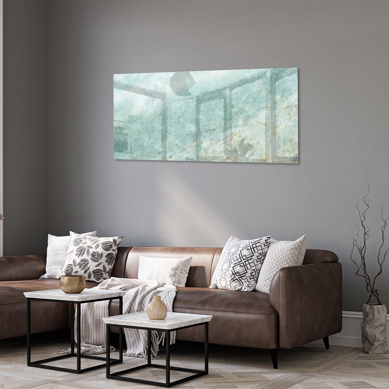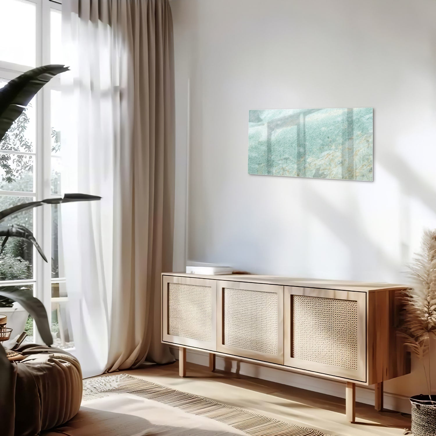 Abstract Glazen Schilderij in Verfijnde Groentinten
