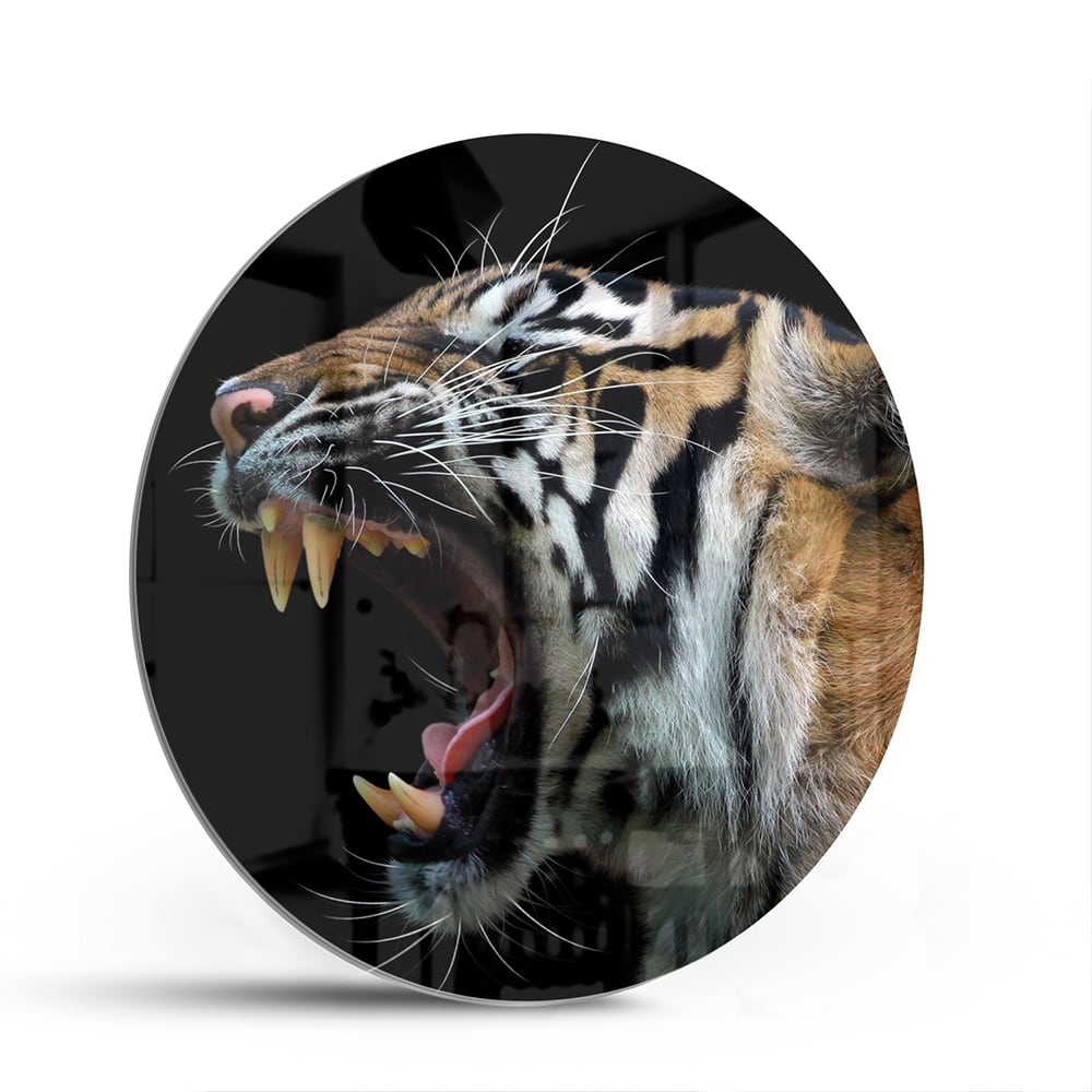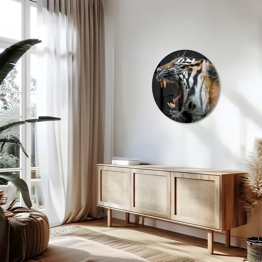 Indrukwekkend glazen schilderij van een brullende tijger