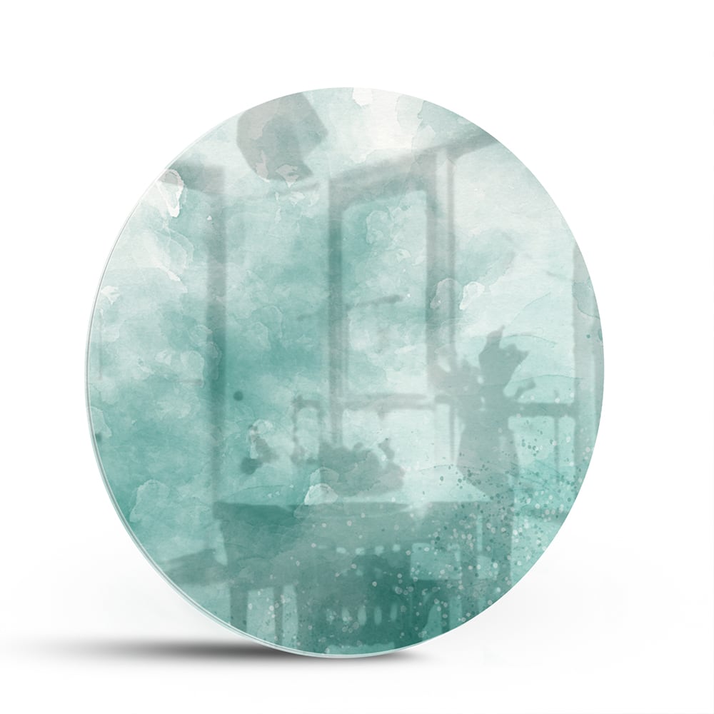 Abstract glazen schilderij in aquablauw