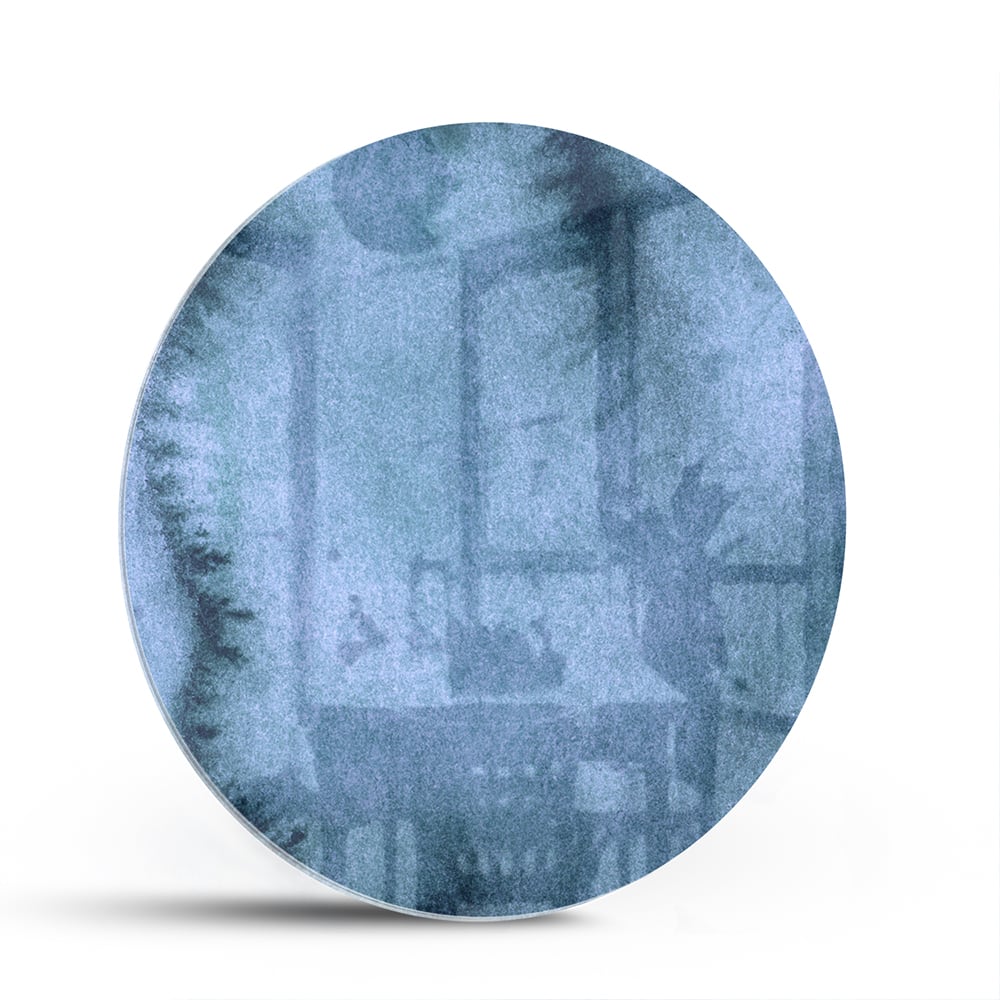 Moderne glazen schilderij in blauw tinten