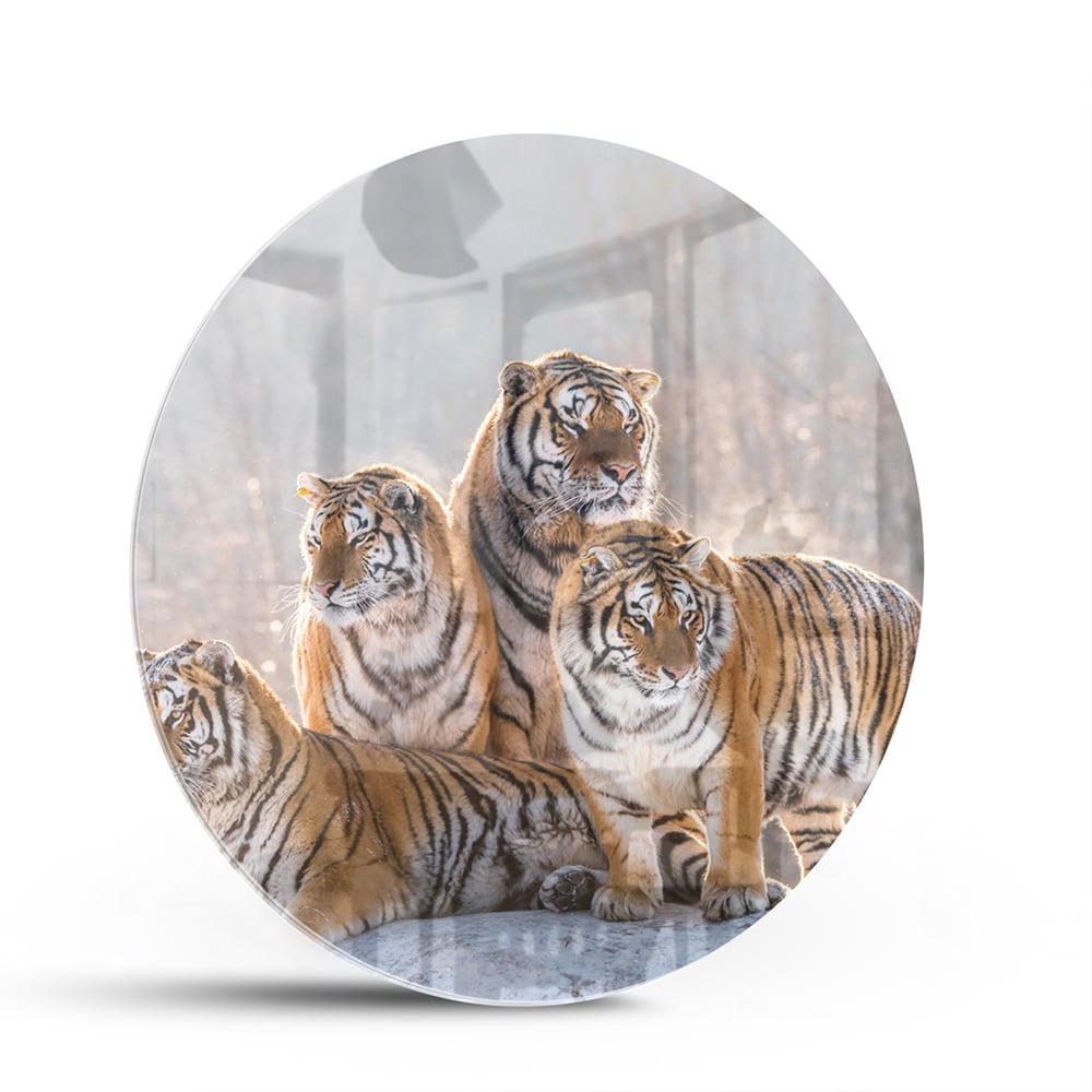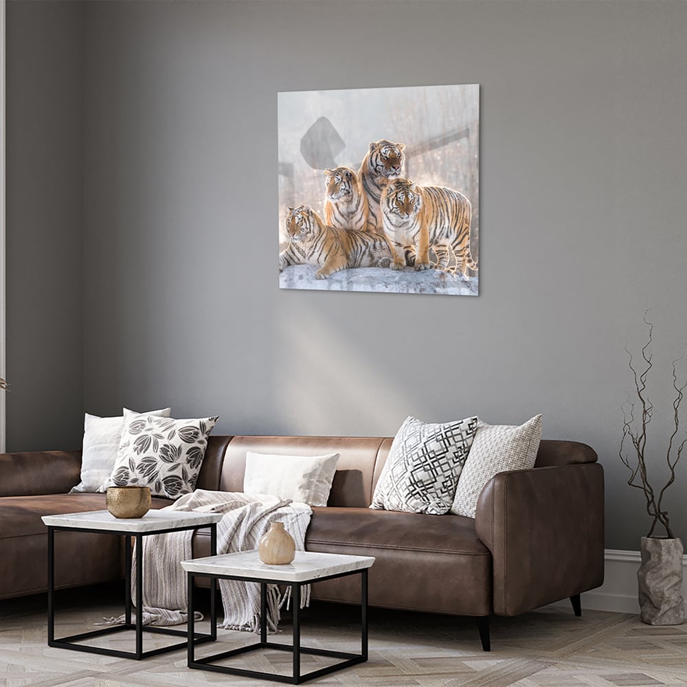 Drie majestueuze tijgers op een glazen schilderij
