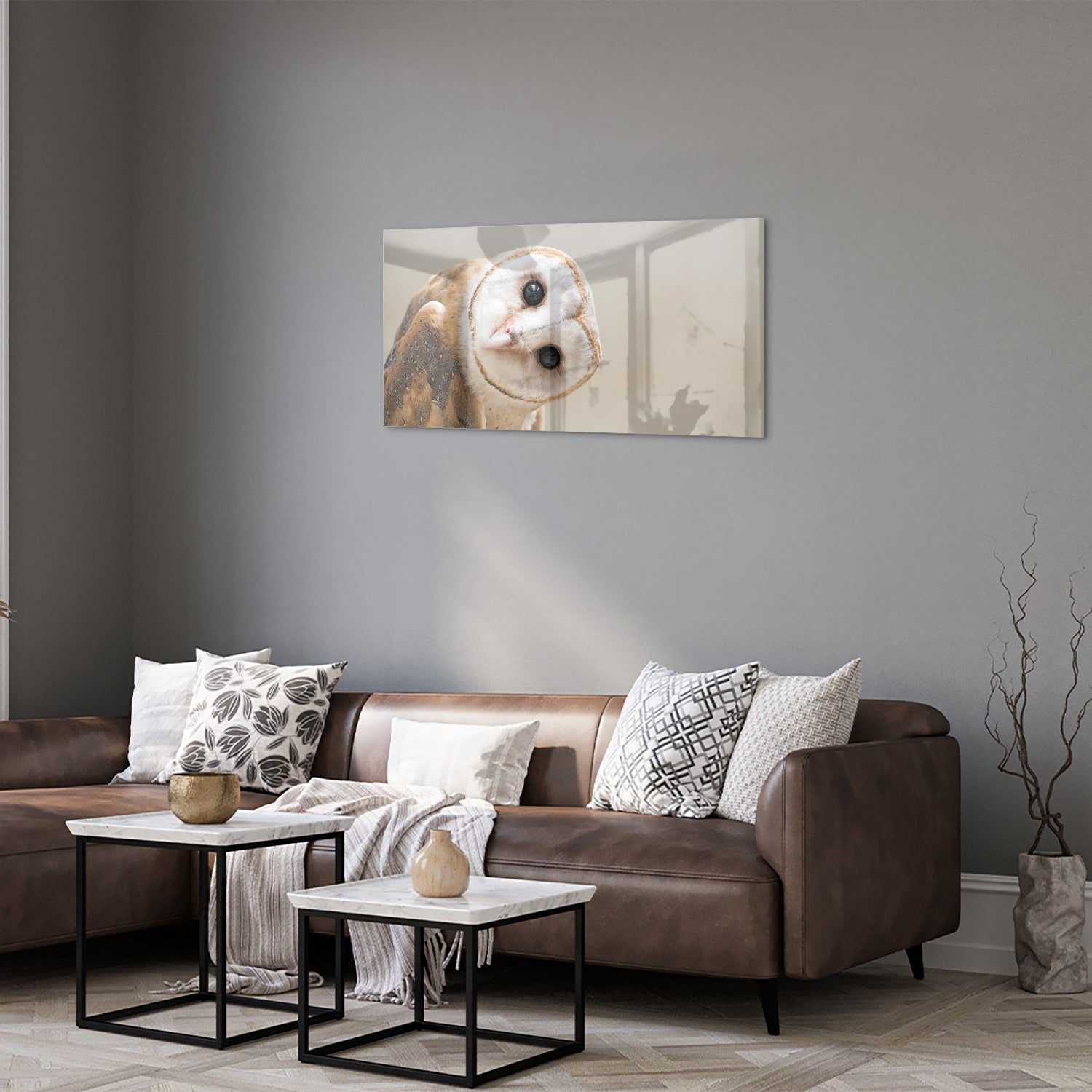 Schilderij van een nieuwsgierige eigenwijze uil