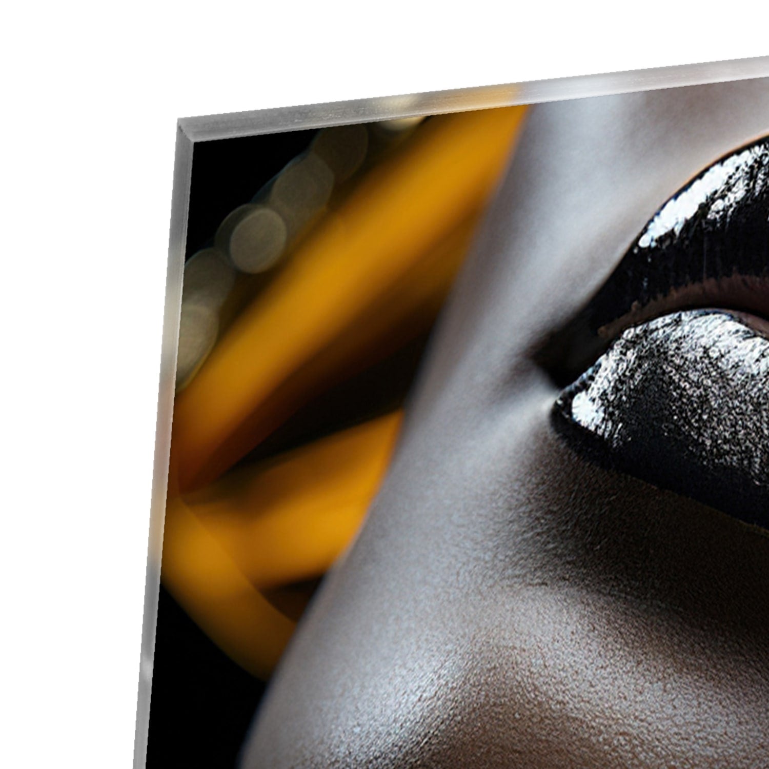 Gouden en zwarte glazen schilderij met vrouwelijk gezicht