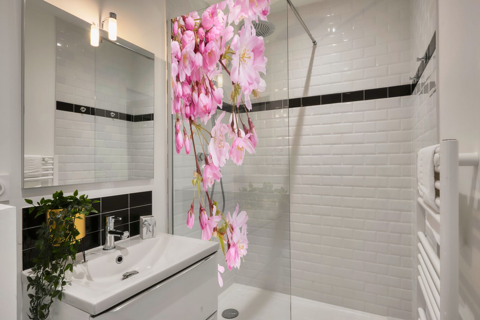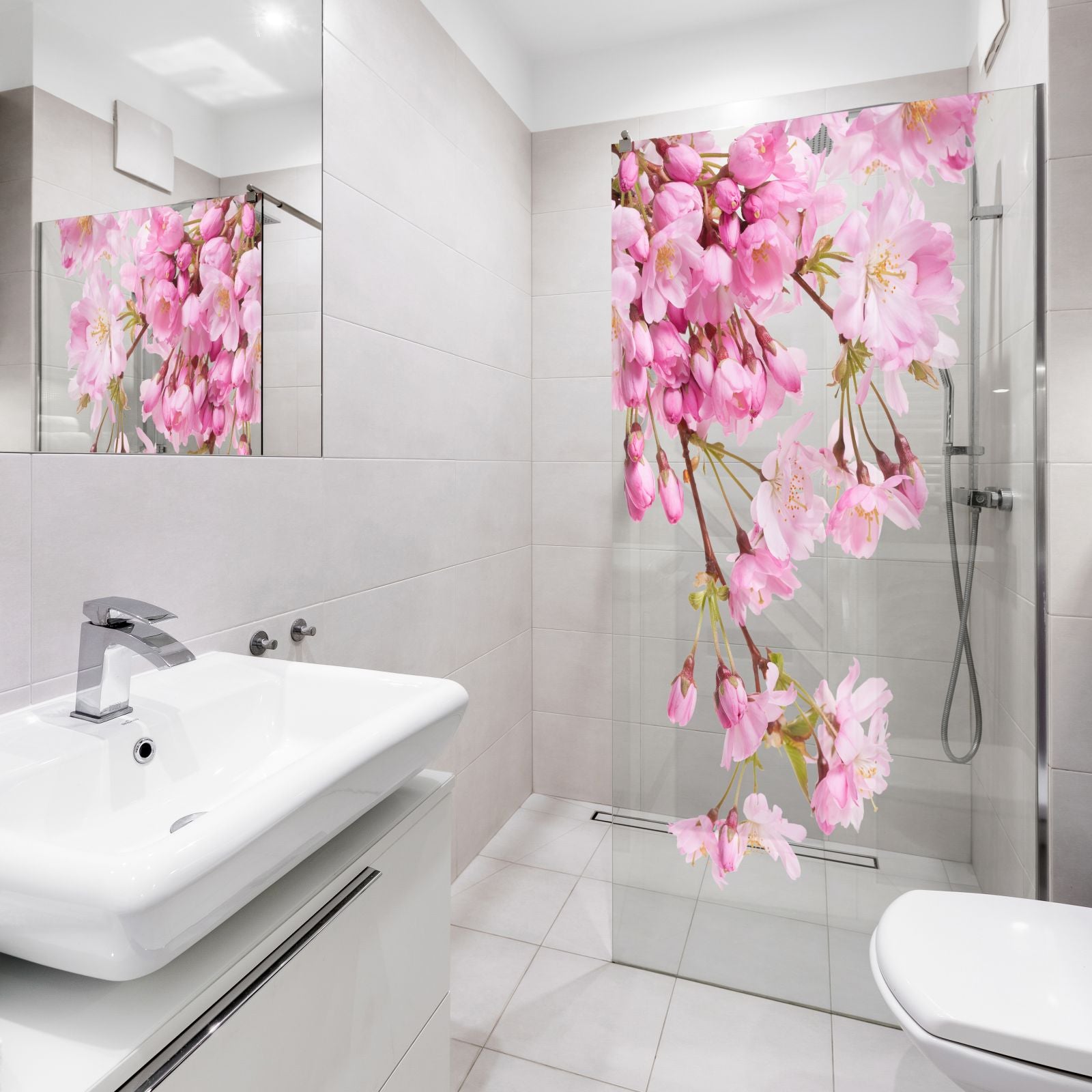 Inloopdouche - Extra helder glas - Thermisch gehard en gelaagd veiligheidsglas - Roze lente kersenbloesem