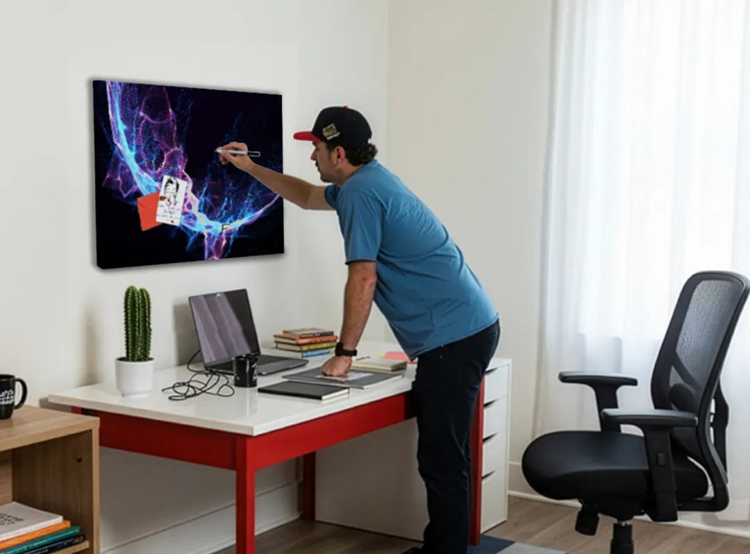 Metalen magneetbord met abstracte neon kunst – droog uitwisbaar & magnetisch