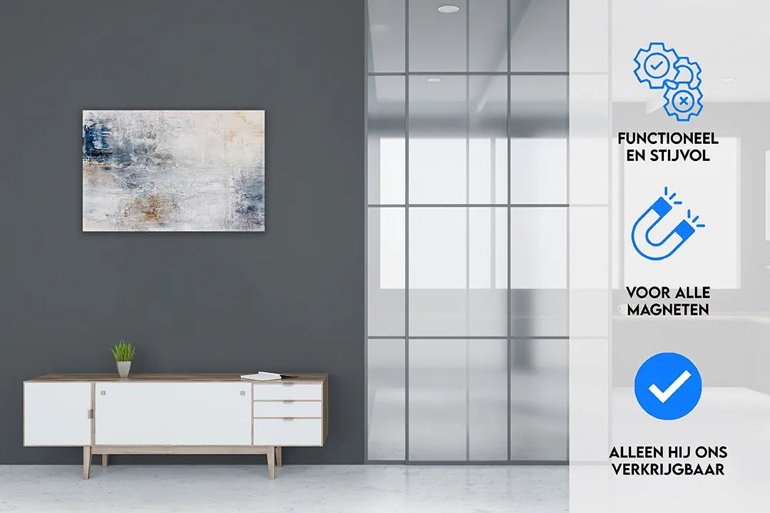 Metalen magneetbord in abstracte blauwtinten – droog uitwisbaar & magnetisch
