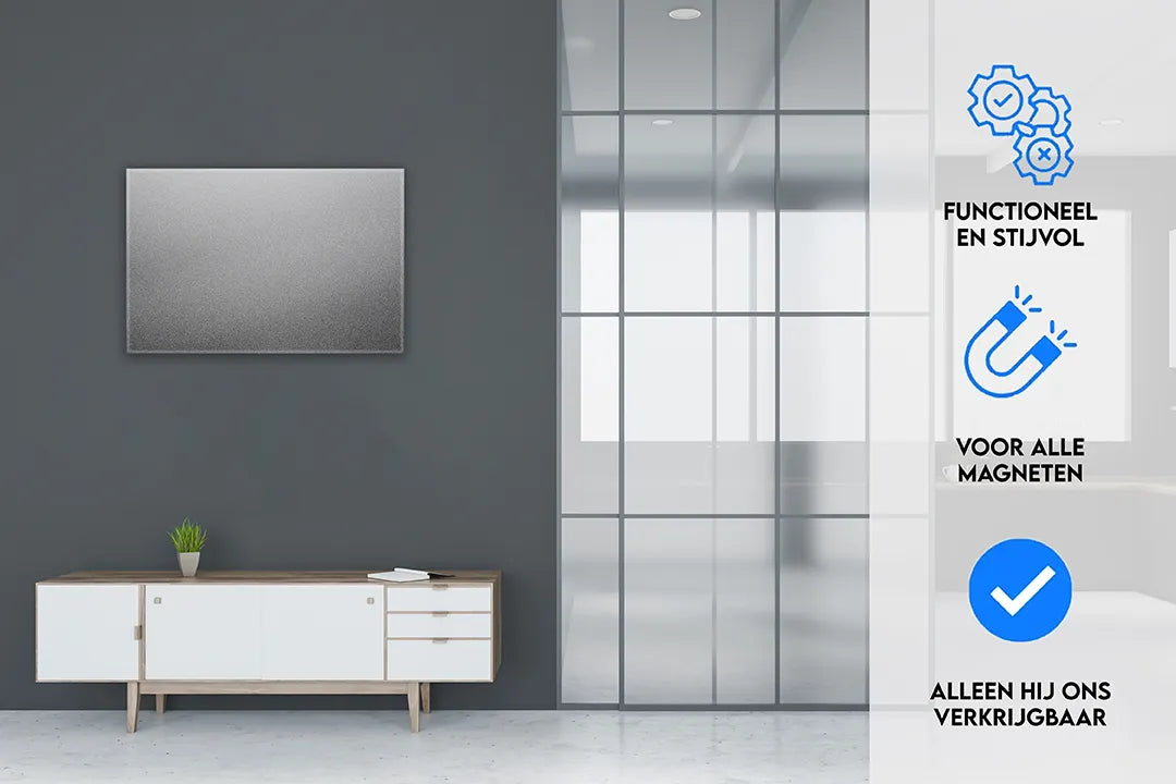 Modern metalen magneetbord in luxe grijs – droog uitwisbaar & magnetisch