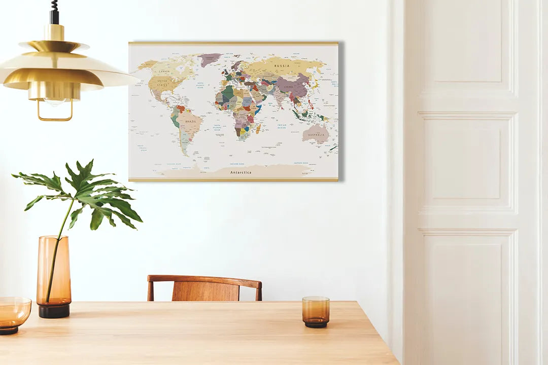 Wereldkaart Magneetbord - Decoratief Aluminium Paneel – droog uitwisbaar & magnetisch