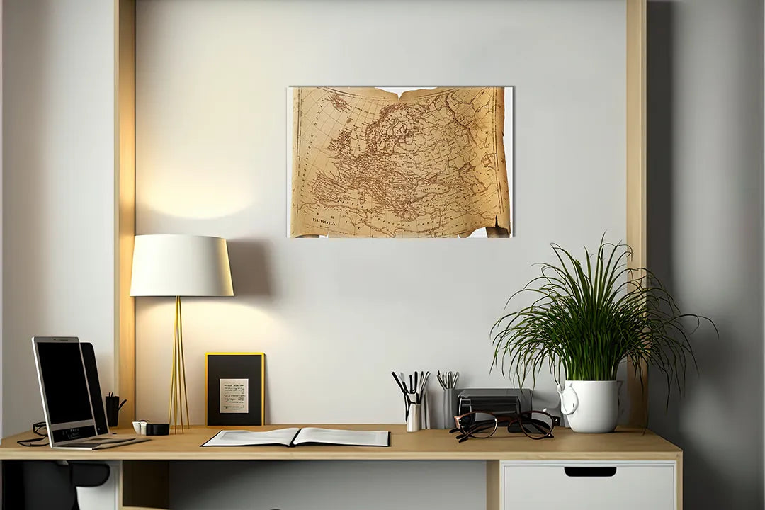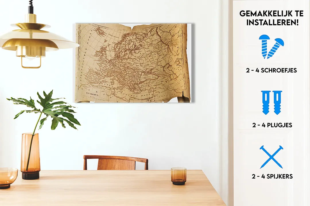 Antieke kaart van Europa als metalen magneetbord – droog uitwisbaar & magnetisch