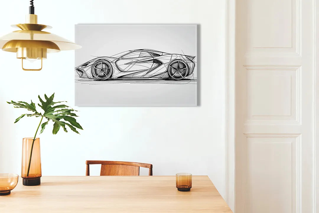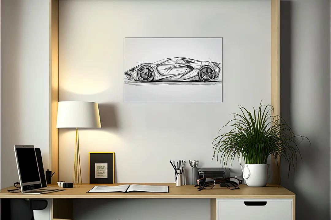 Metalen magneetbord met automobilontwerp in zwart-wit – droog uitwisbaar & magnetisch