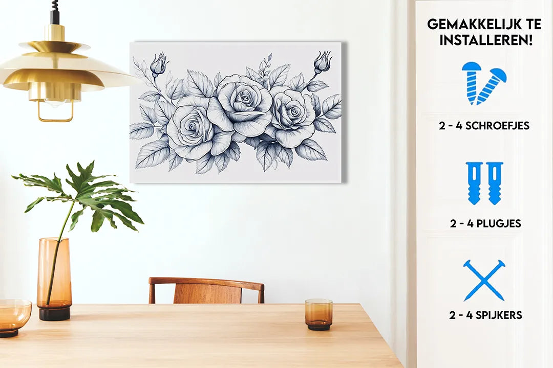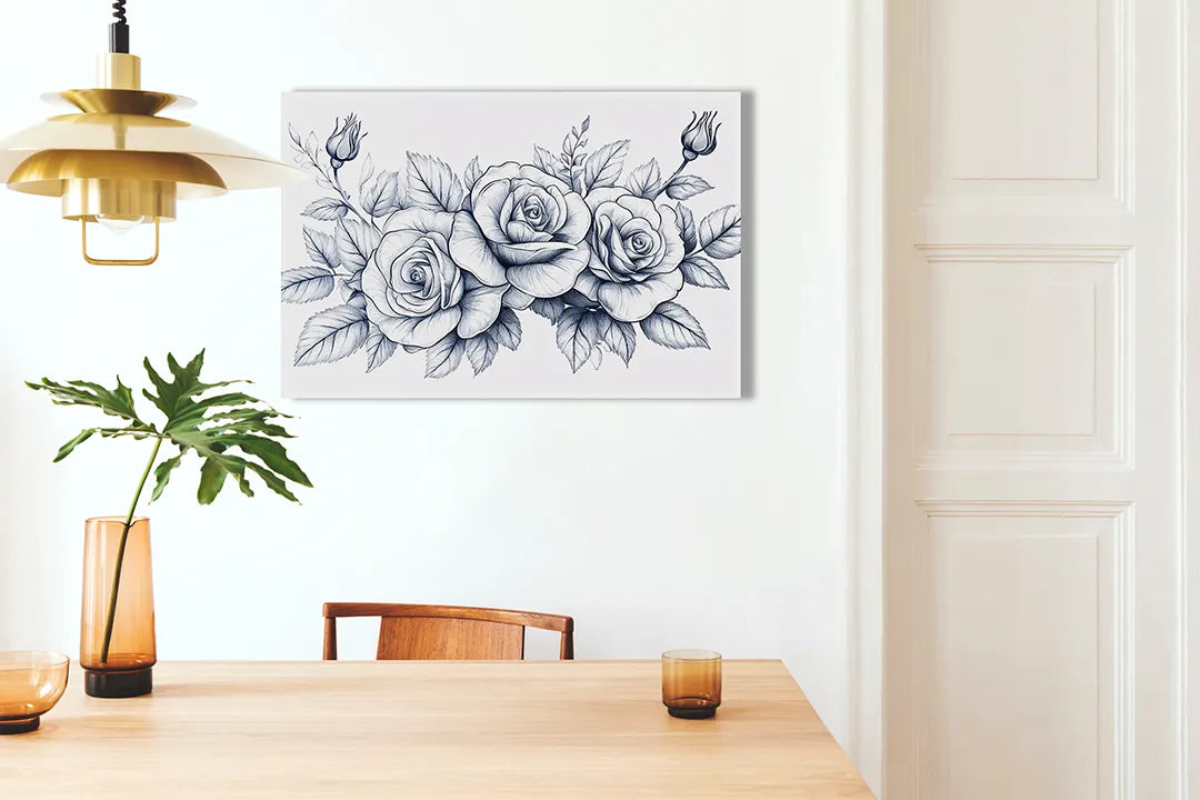 Metalen magneetbord met blauwe rozenillustratie – droog uitwisbaar & magnetisch