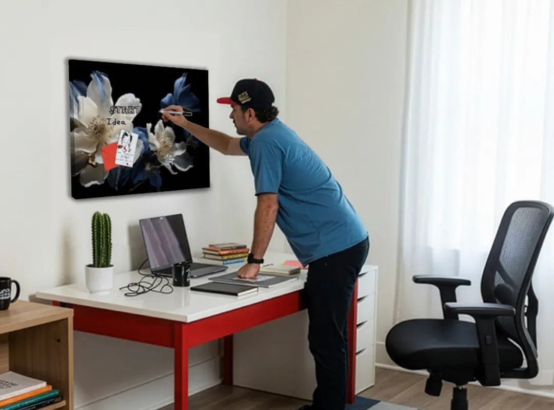 Elegant metalen magneetbord met bloemen – droog uitwisbaar & magnetisch