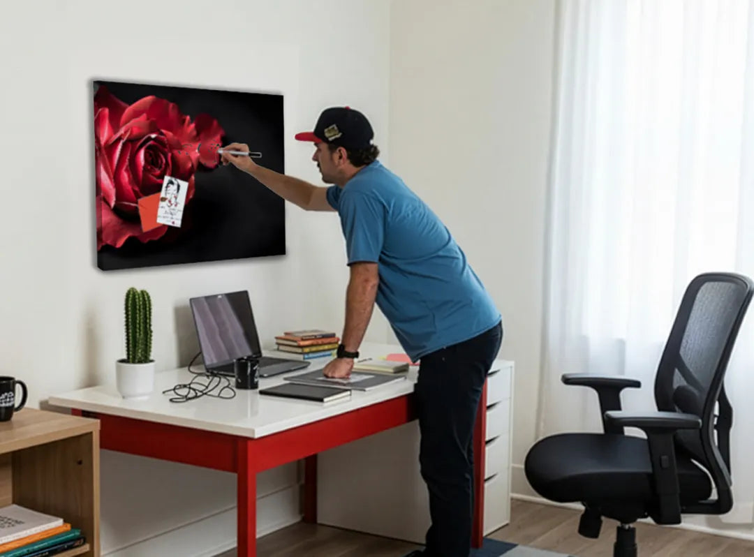 Metalen magneetbord met rode rozen als decoratie – droog uitwisbaar & magnetisch