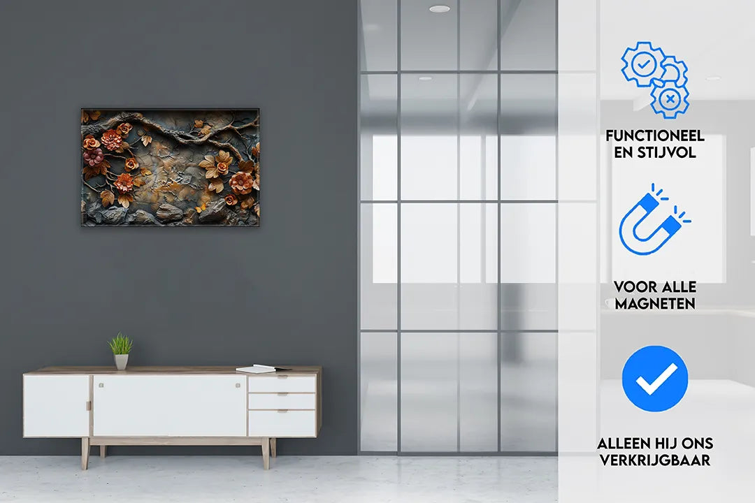Metalen magneetbord met bloemmotief in warme kleuren – droog uitwisbaar & magnetisch