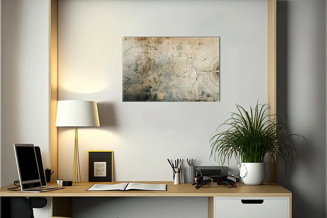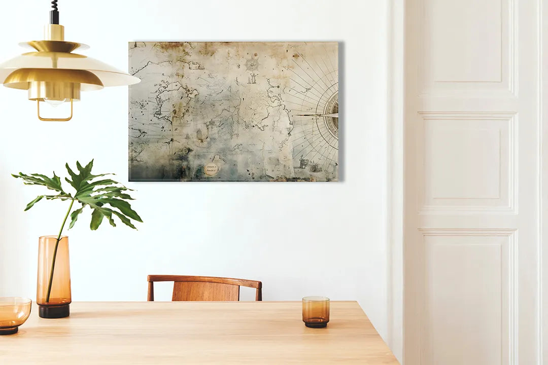 Vintage Aluminium Magneetbord met Wereldkaart – droog uitwisbaar & magnetisch