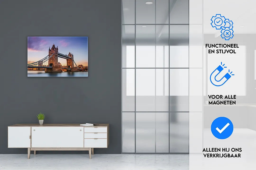Metalen magneetbord Tower Bridge in prachtig licht – droog uitwisbaar & magnetisch