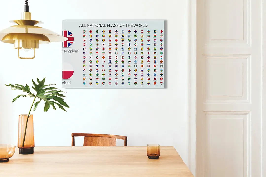 Metalen magneetbord met wereldvlaggen voor decoratie – droog uitwisbaar & magnetisch