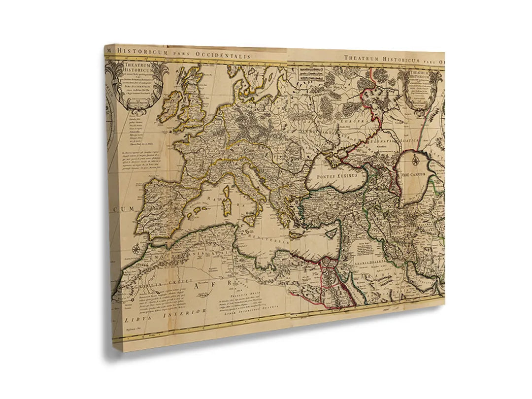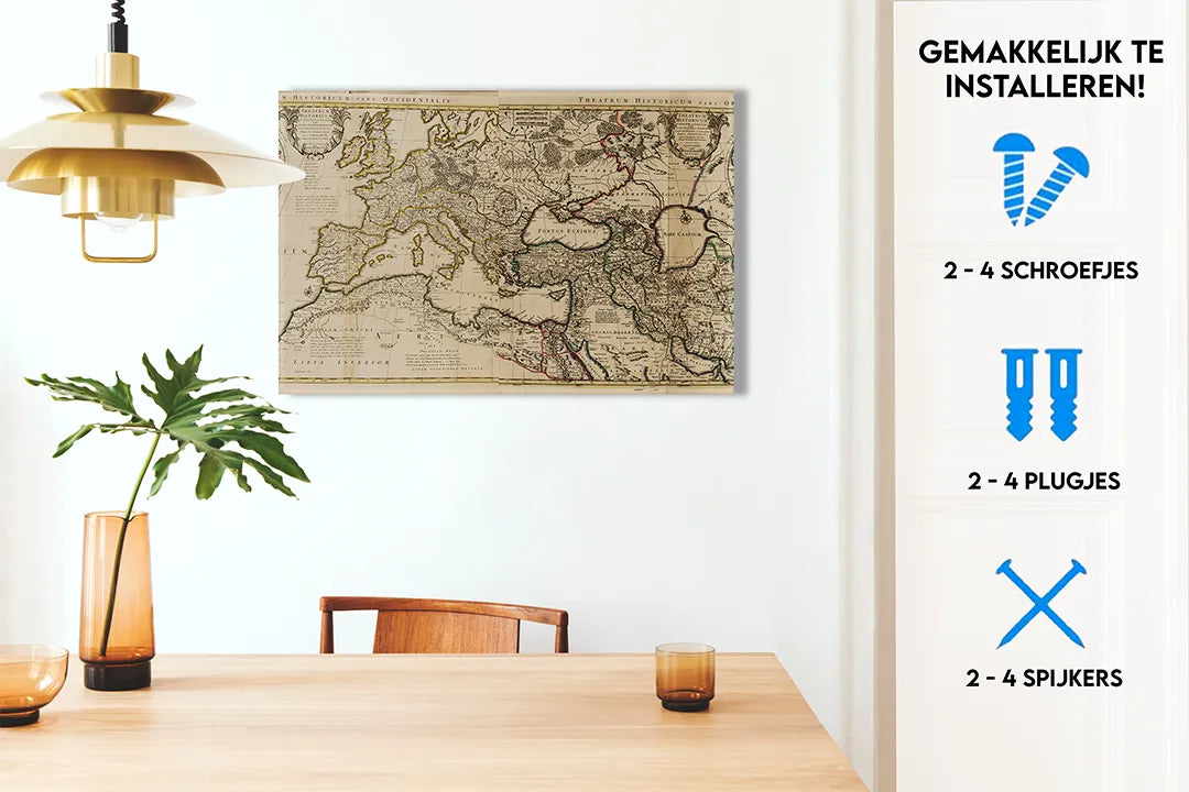 Antieke kaart wandpaneel - metalen magneetbord – droog uitwisbaar & magnetisch