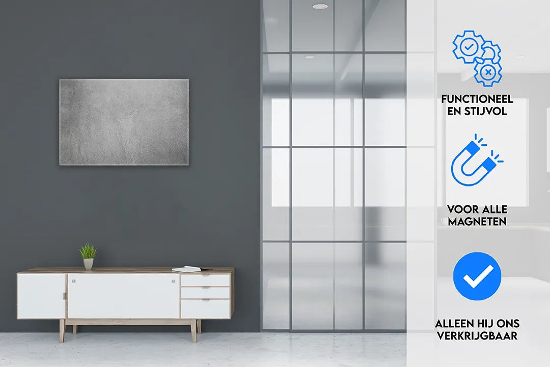 Modern metalen magneetbord in betonlook – droog uitwisbaar & magnetisch