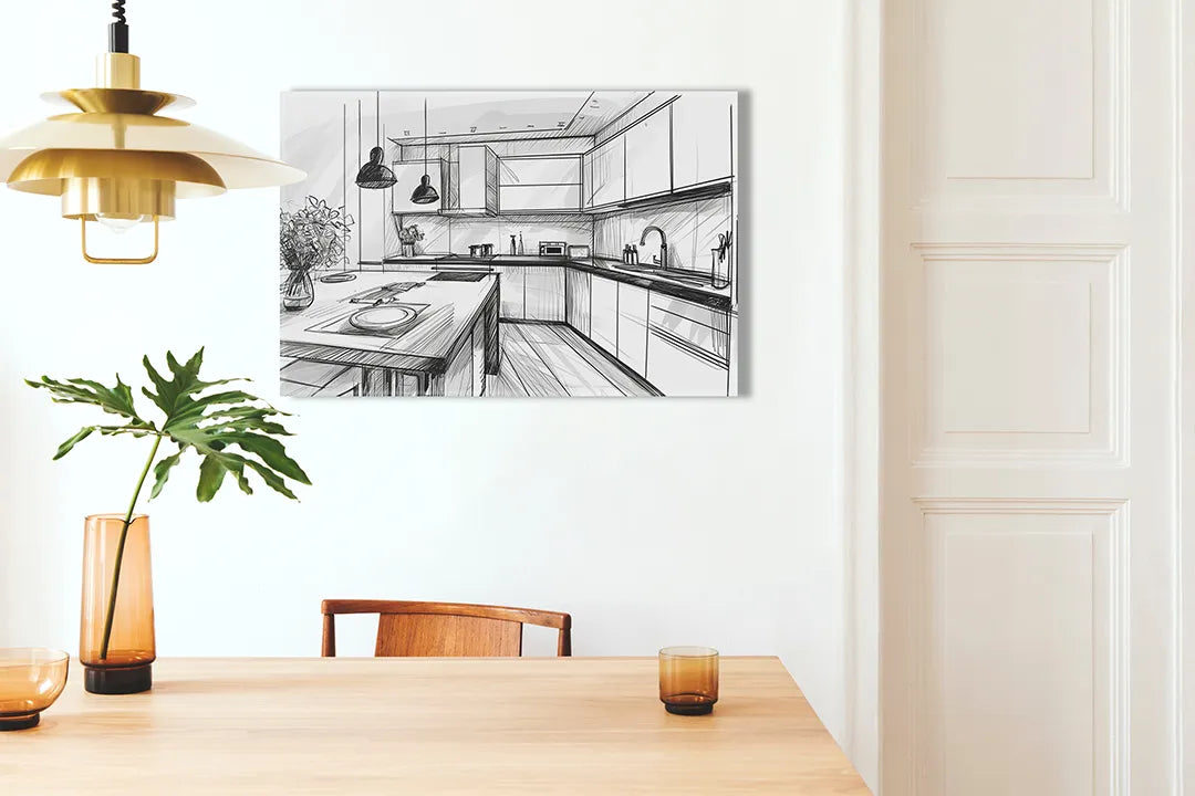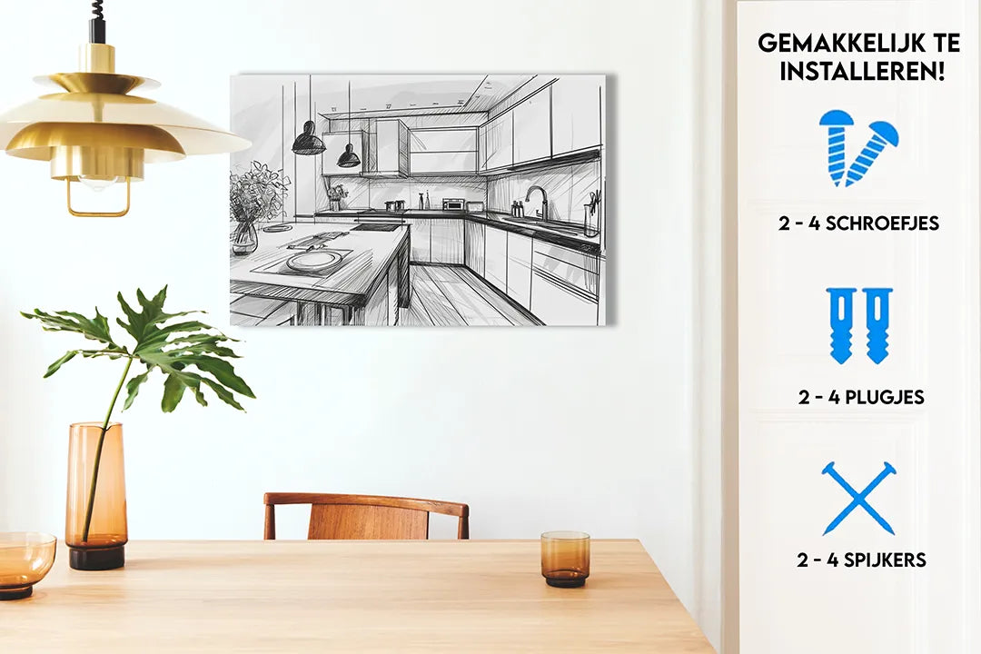 Metalen magneetbord met keukenontwerp – droog uitwisbaar & magnetisch