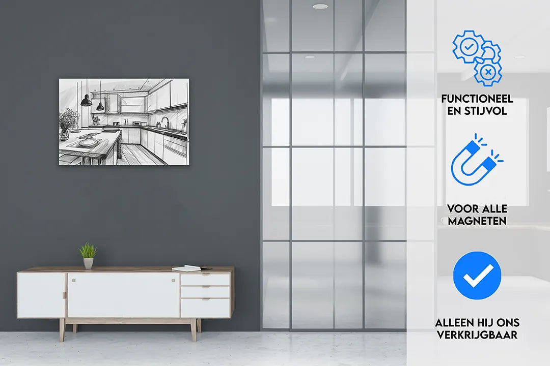 Ideaal als magnetisch bord, moodboard of functioneel wandpaneel voor kantoor, keuken en thuis.