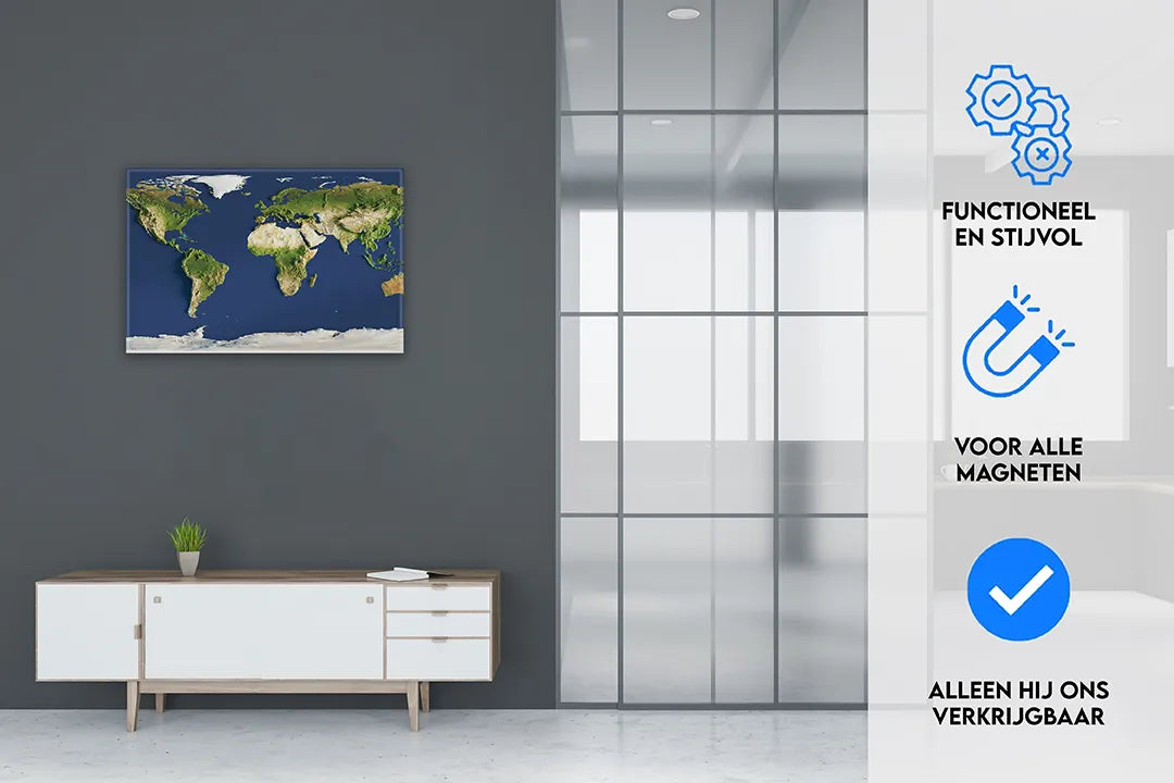 Metalen magneetbord continenten kaart – leerzame wereldkaart