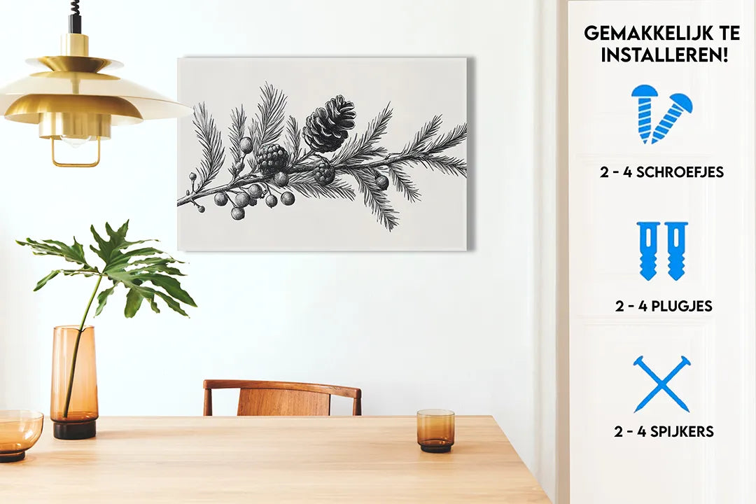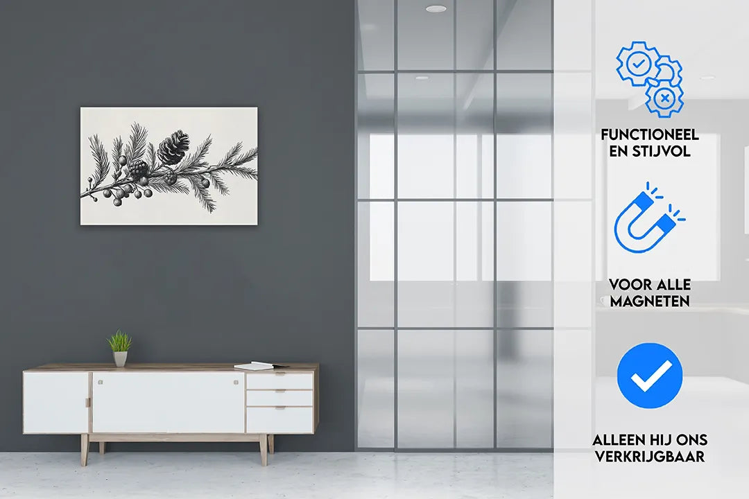 Metalen magneetbord met dennenappels en takken – droog uitwisbaar & magnetisch