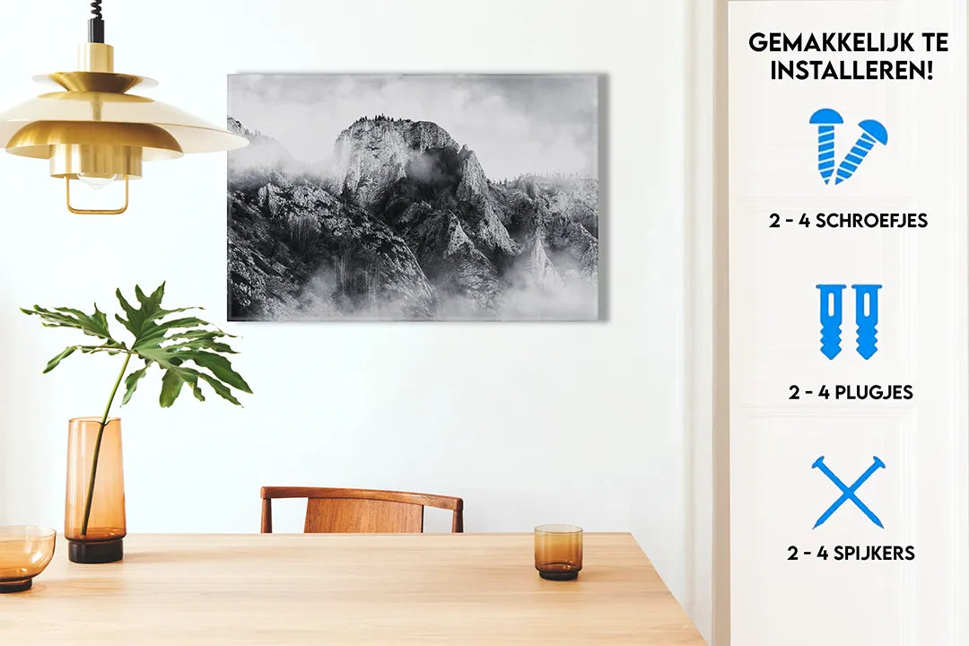 Metalen magneetbord met berglandschap in zwart-wit – droog uitwisbaar & magnetisch