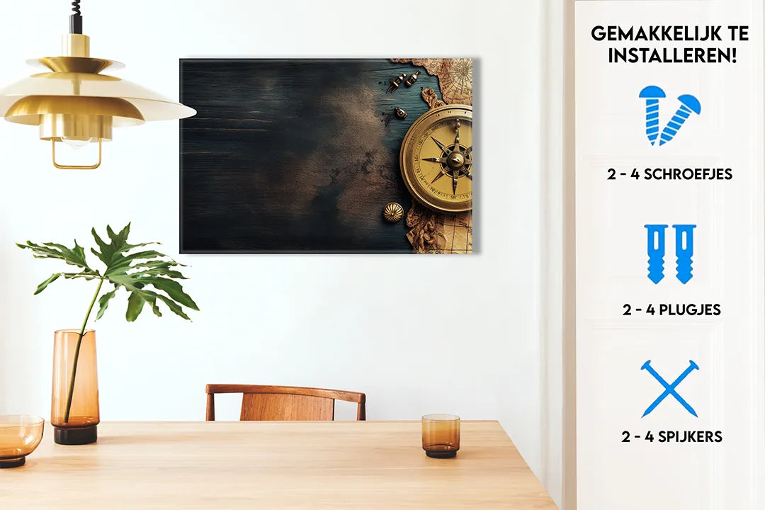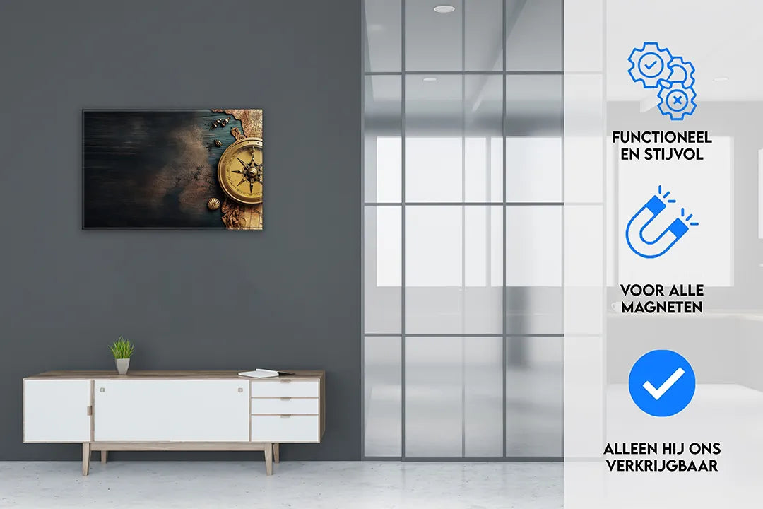 Metalen magneetbord met wereldkaart en kompas – droog uitwisbaar & magnetisch