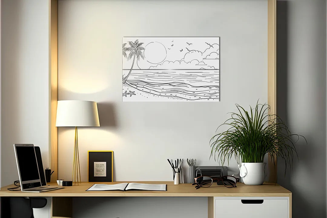 Metalen magneetbord met strand en palmbomen – droog uitwisbaar & magnetisch