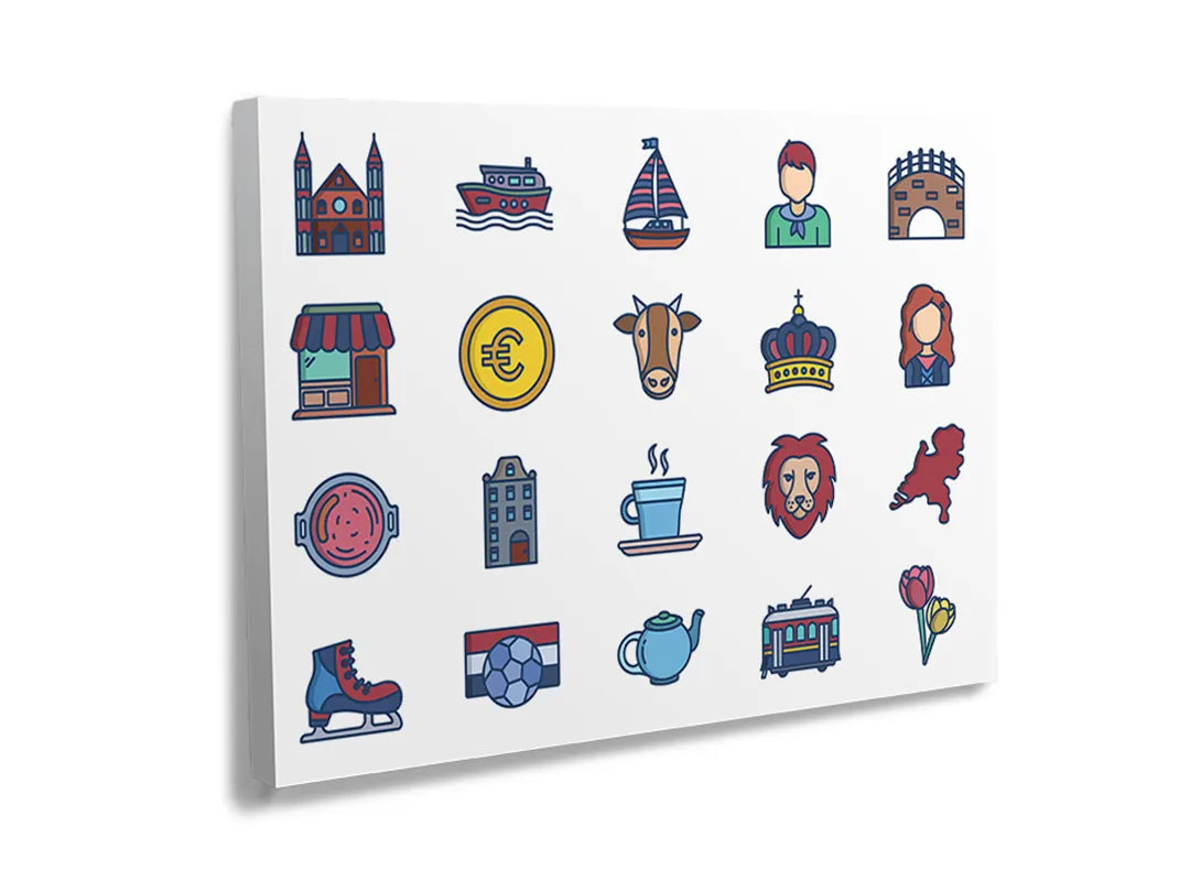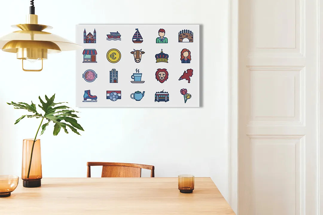 Decoratief metalen magneetbord met iconen van Nederland – droog uitwisbaar & magnetisch