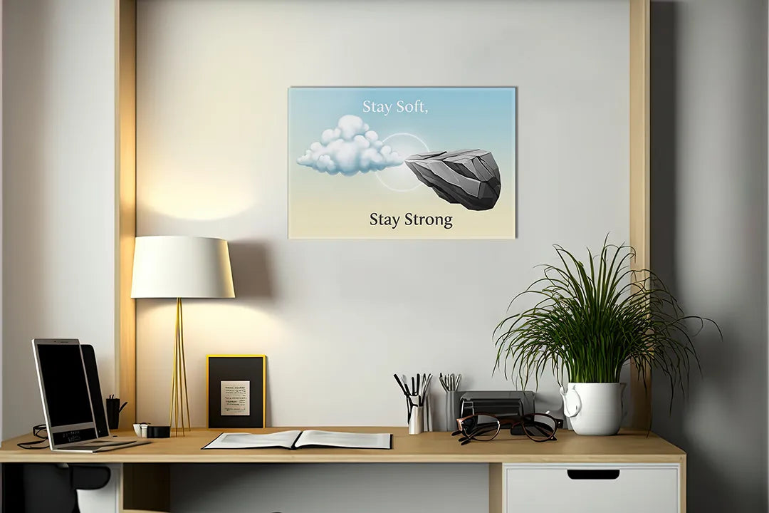 Motiverend Metalen Magneetbord - Stay Soft, Stay Strong – droog uitwisbaar & magnetisch