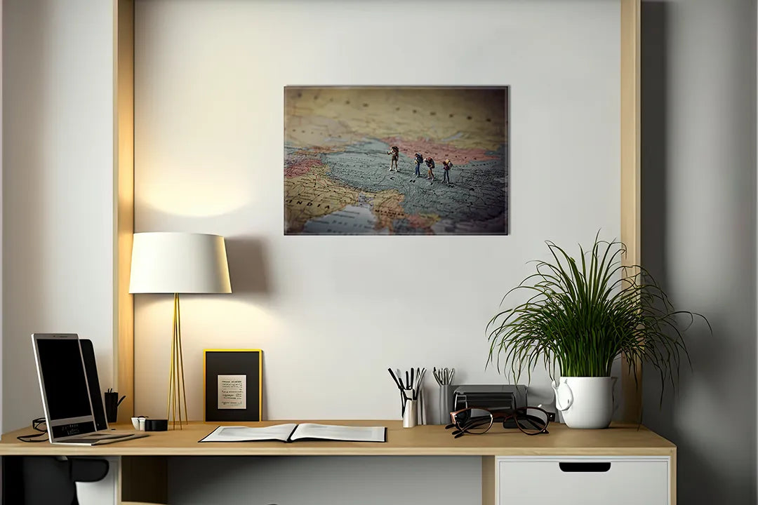 Metalen magneetbord met avontuurlijke reizigers – droog uitwisbaar & magnetisch