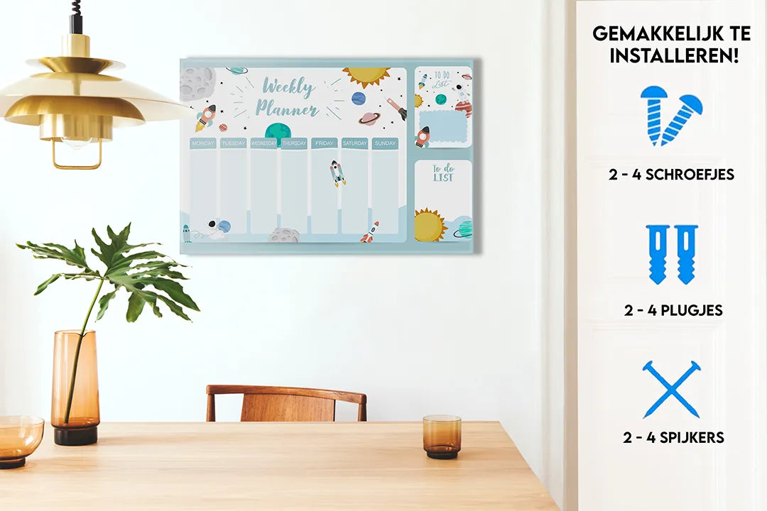 Metalen Magneetbord met Ruimte-Thema en Planner – droog uitwisbaar & magnetisch