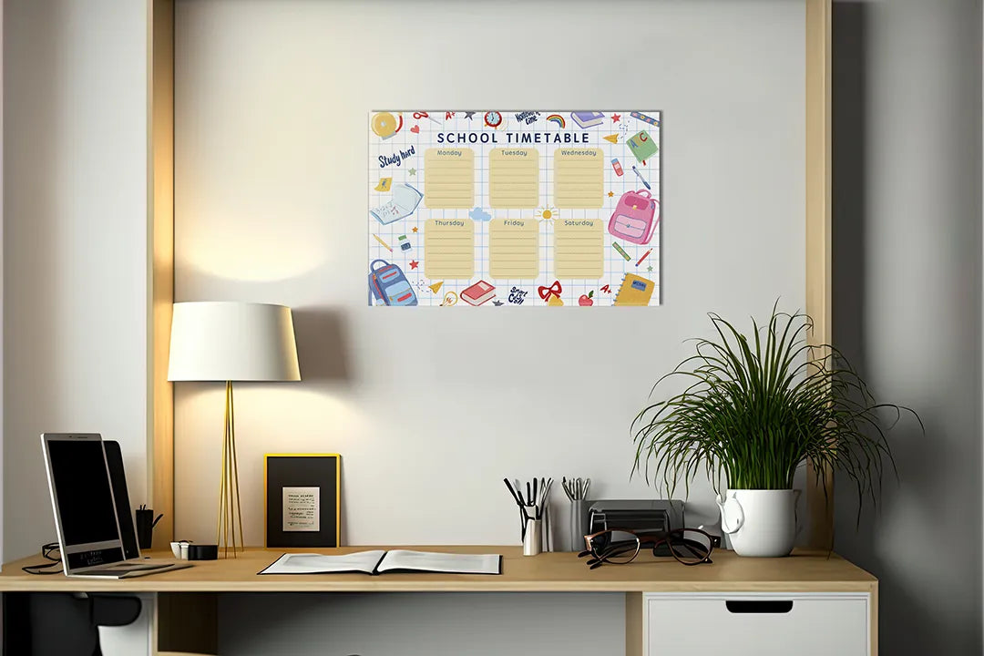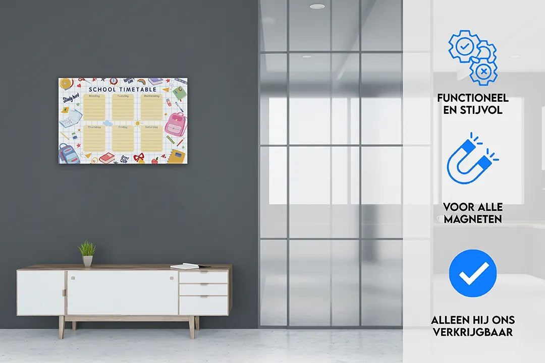 Metalen magneetbord met schooltimetable ontwerp – droog uitwisbaar & magnetisch