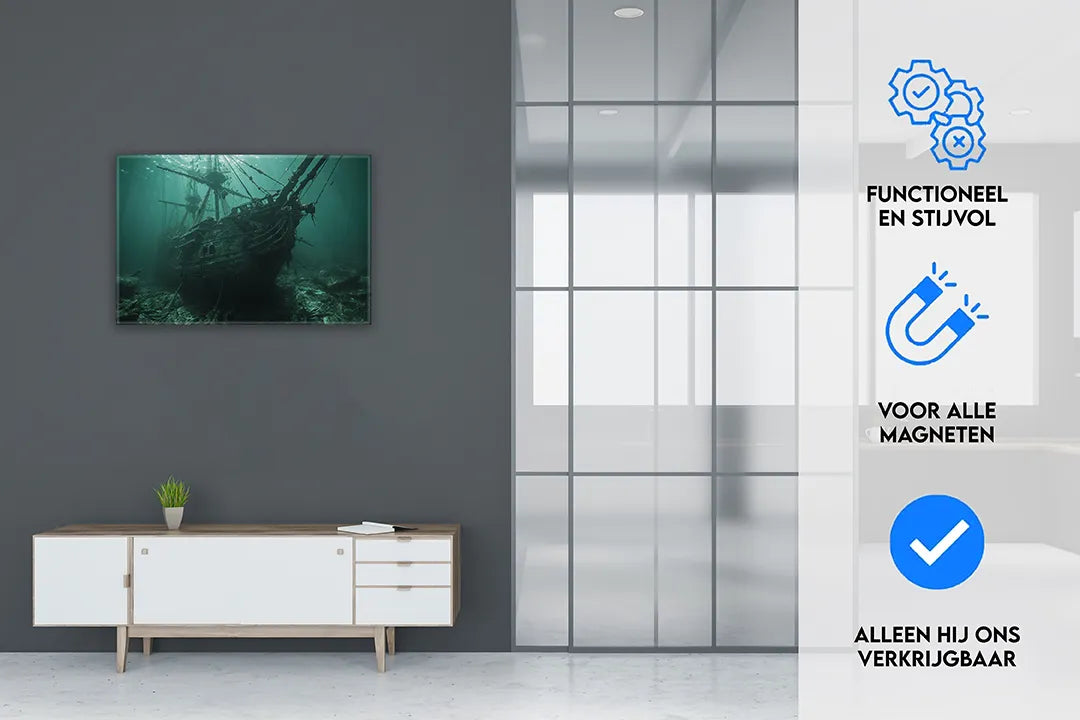 Metalen magneetbord met een mysterieuze zeeschip afbeelding – droog uitwisbaar & magnetisch