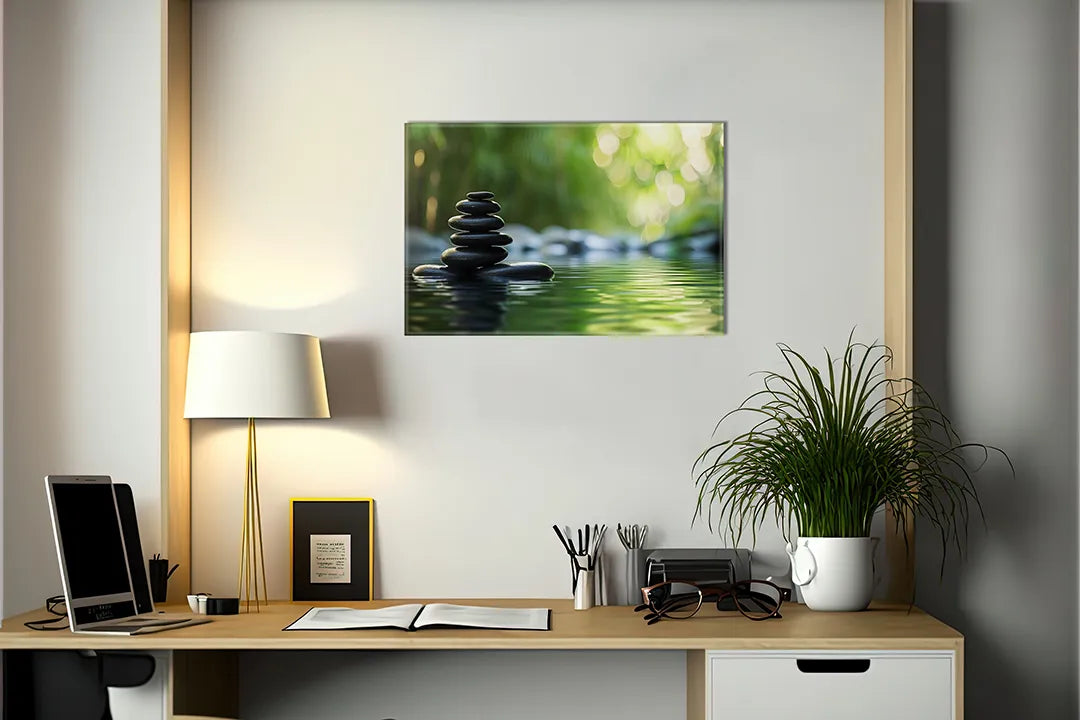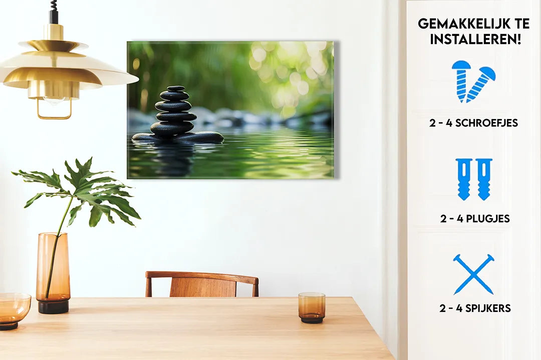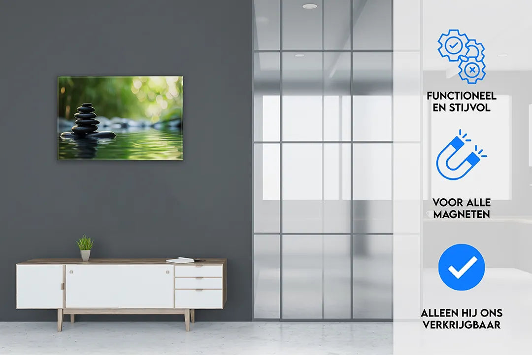 Stijlvol metalen magneetbord met zen stenen – droog uitwisbaar & magnetisch