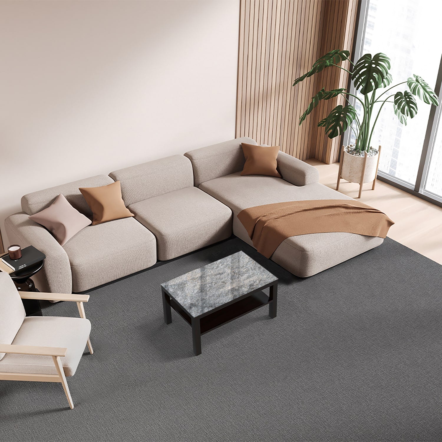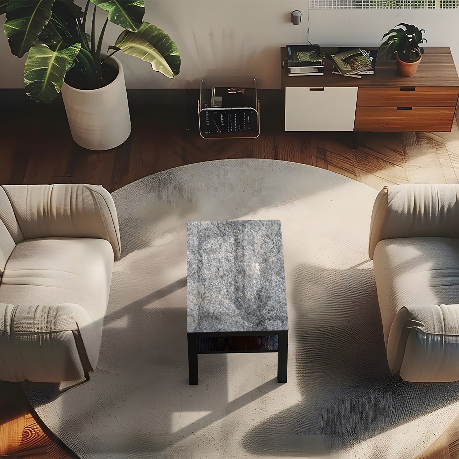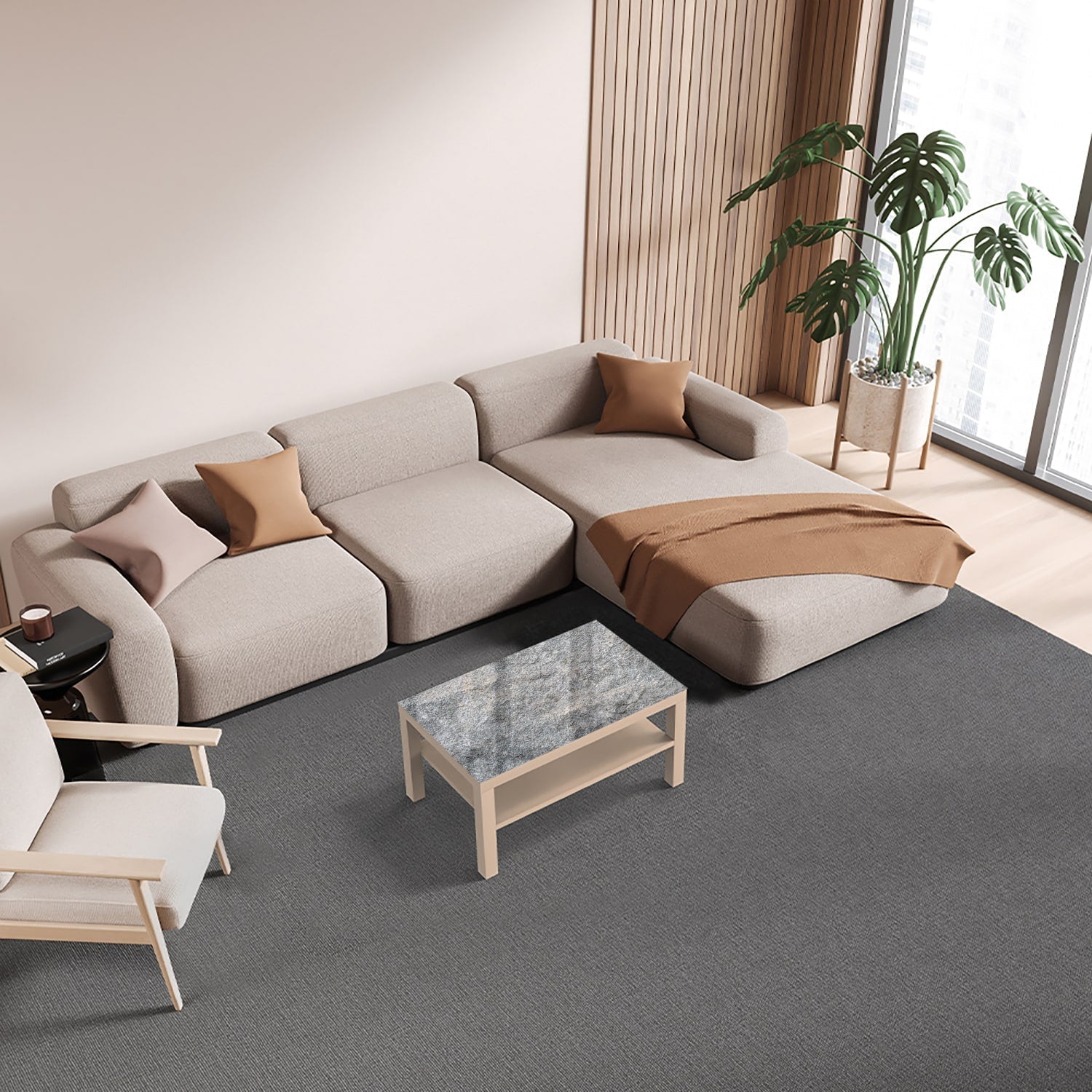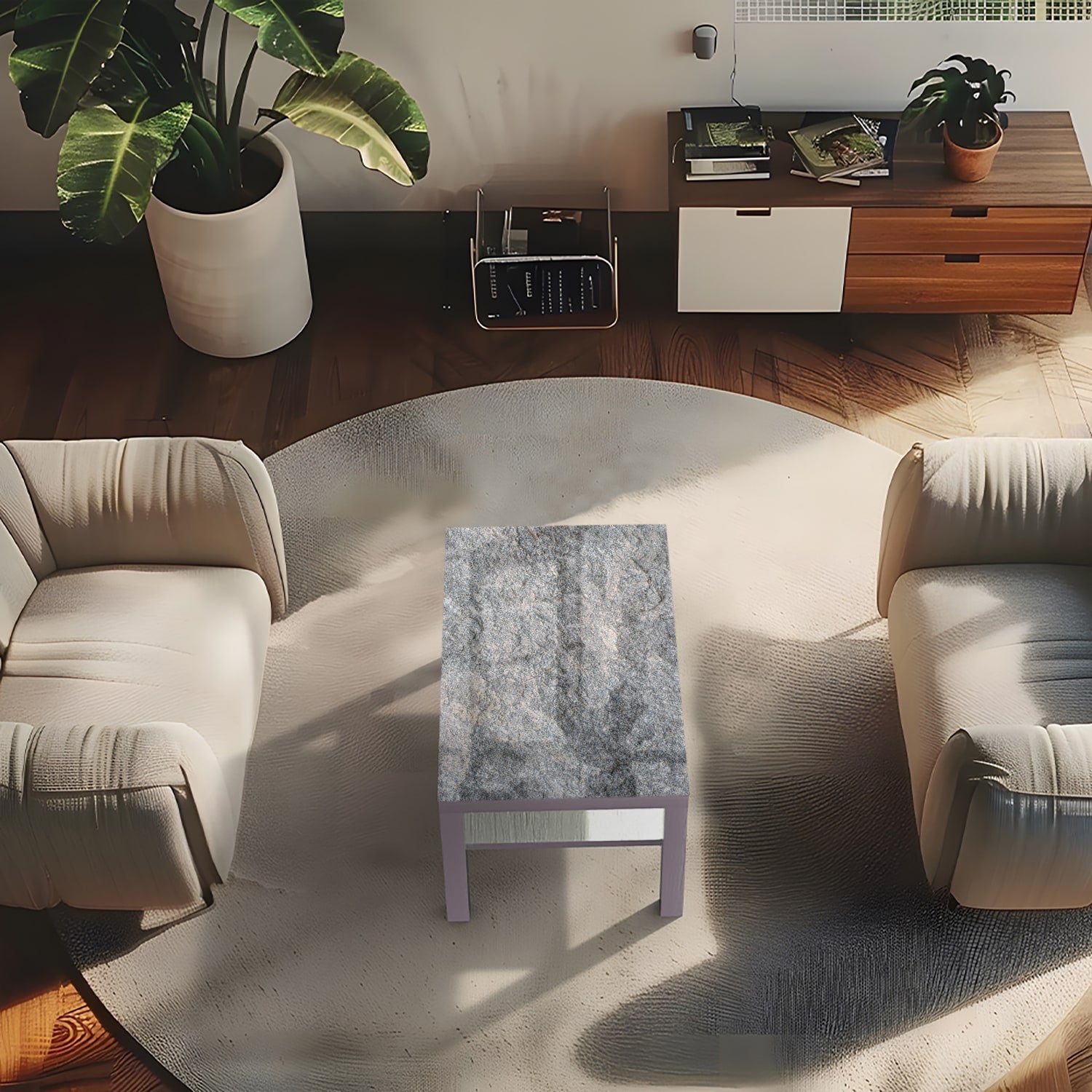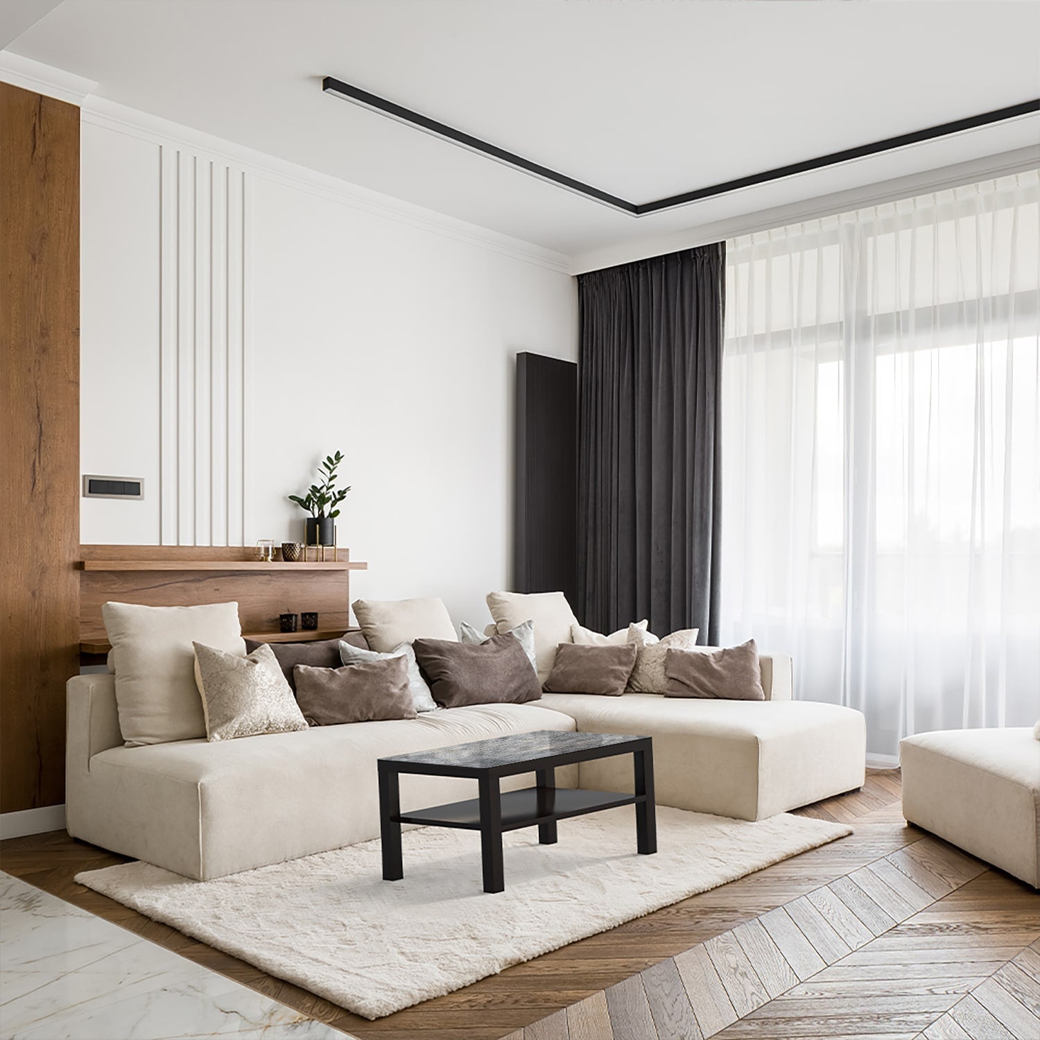 Een modern en duurzaam alternatief voor een sfeervolle kamer: de iconische Ikea Lack tafel met glazen tafelblad.