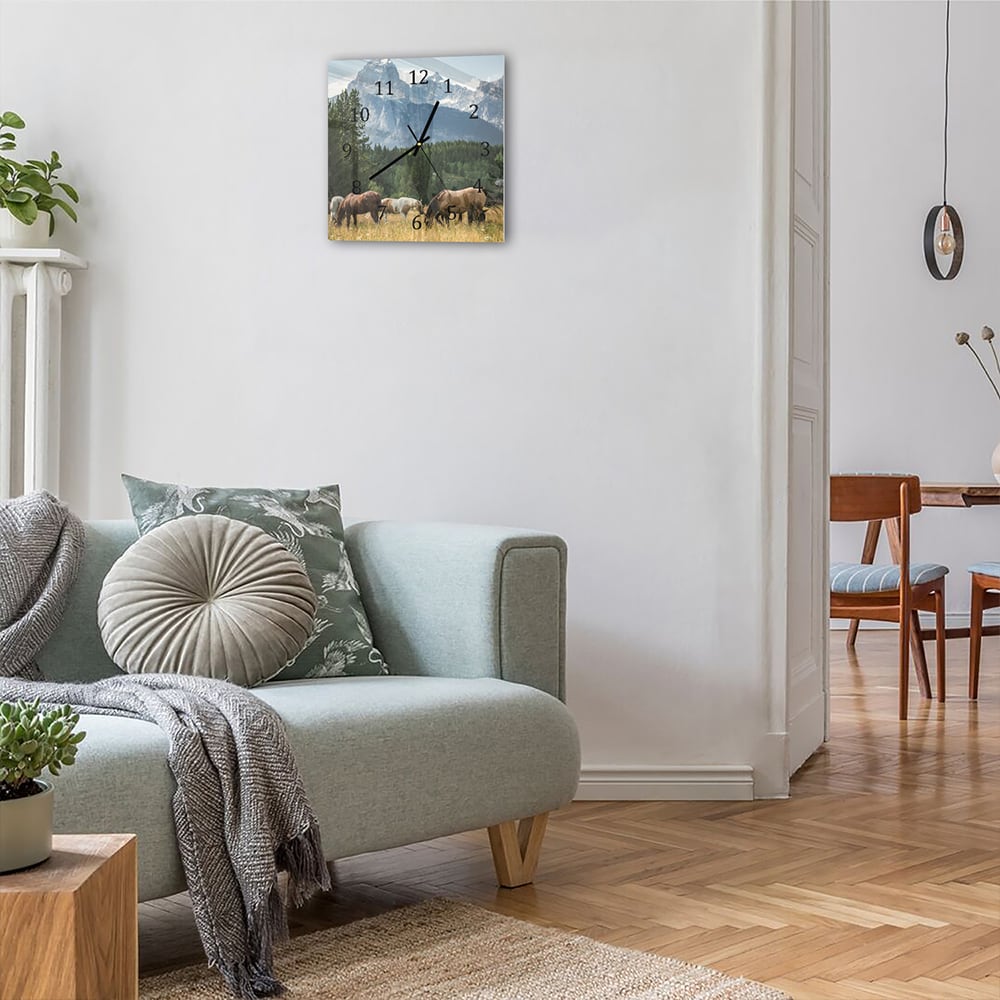 Wandklok 30x30 - Gehard Glas - Grazende Paarden