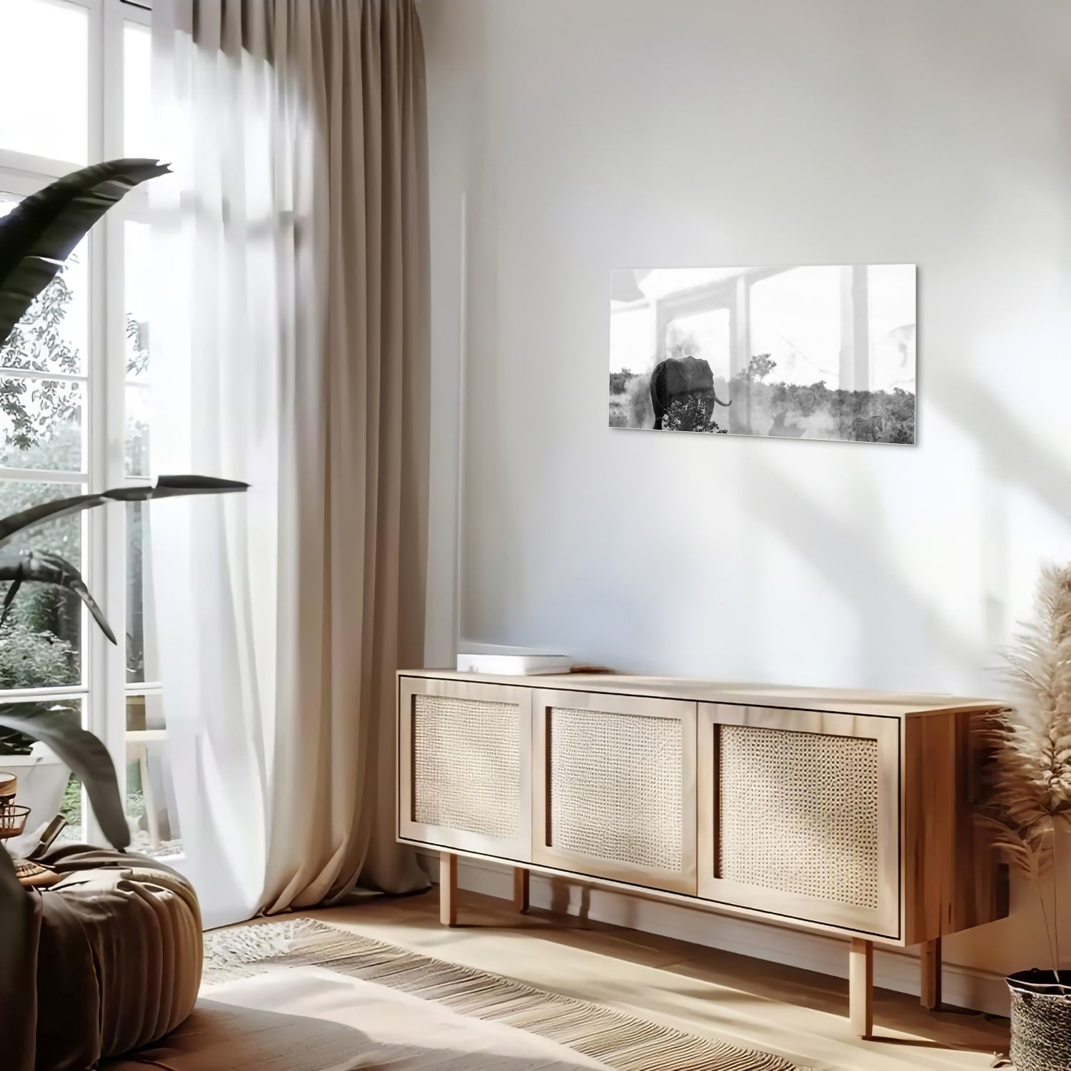 Elegant zwart-wit glas schilderij van een olifant