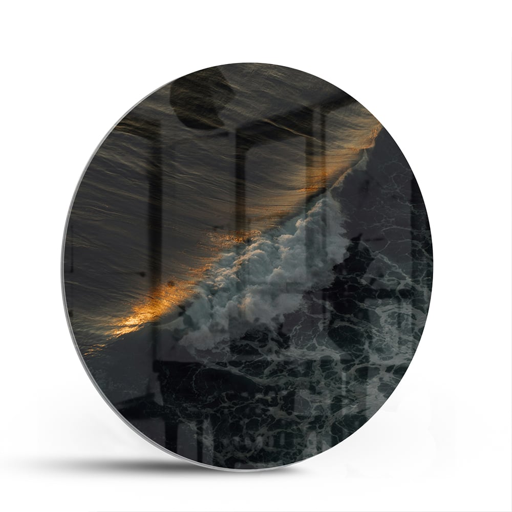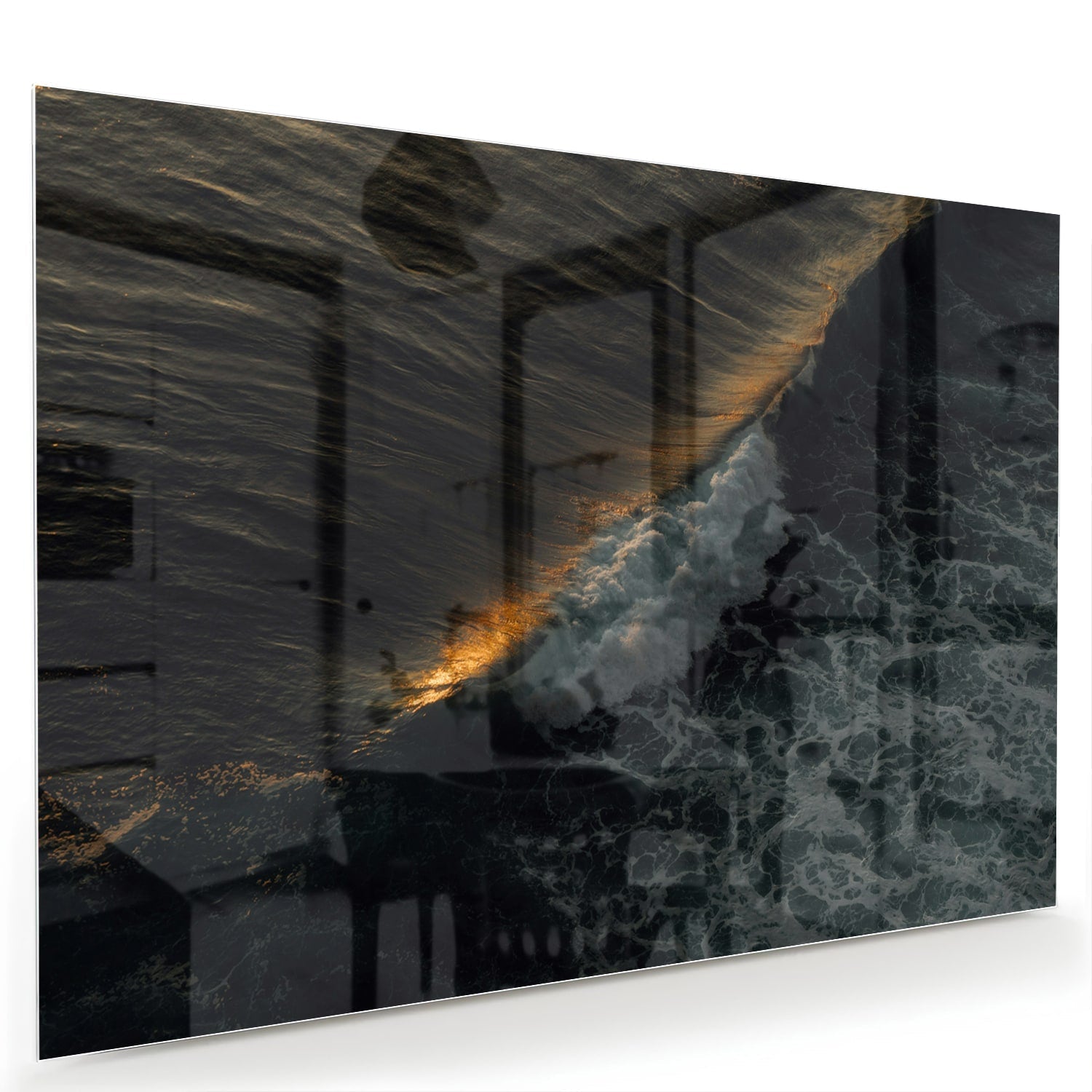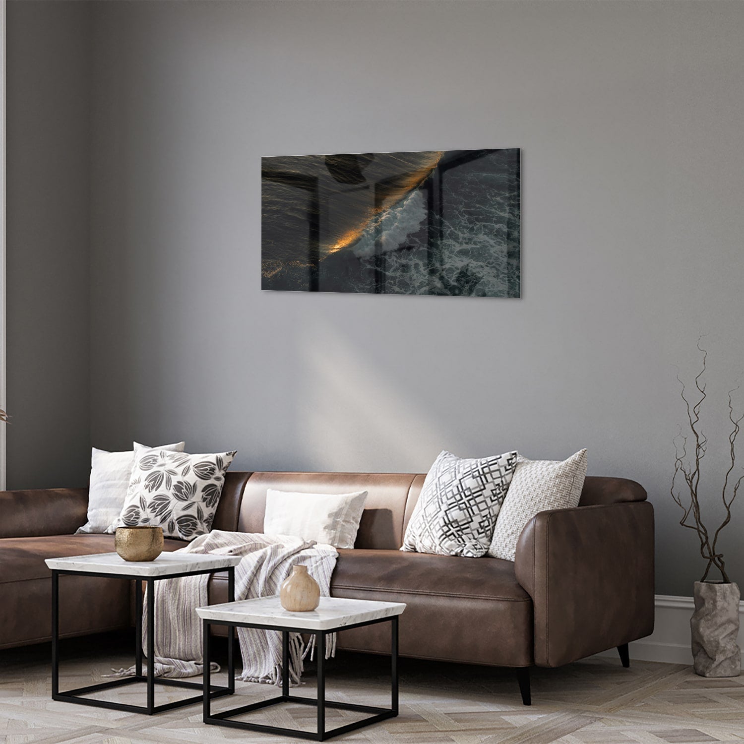 Zwarte Glazen Schilderij met Zeegezicht en Goudaccenten
